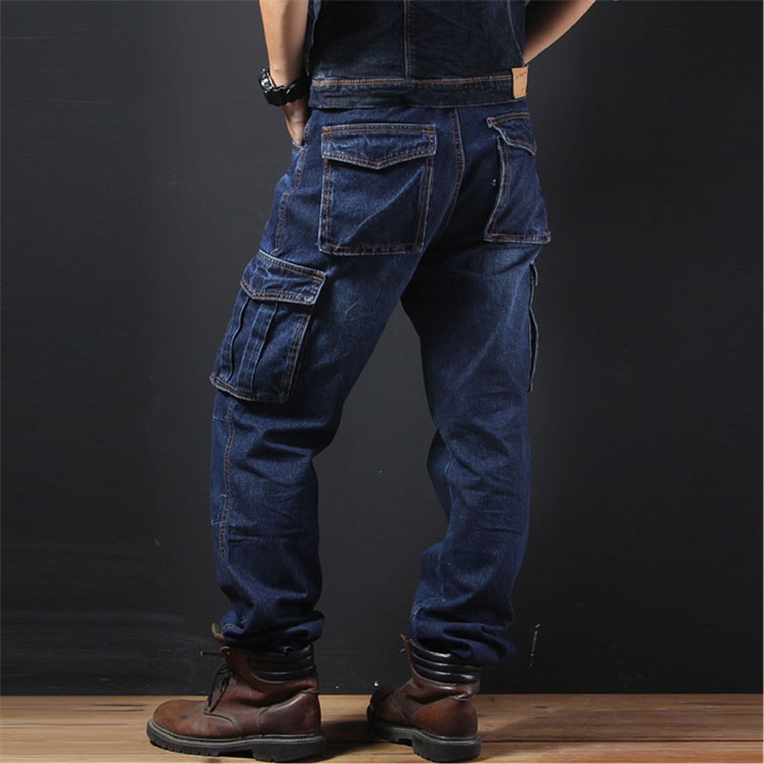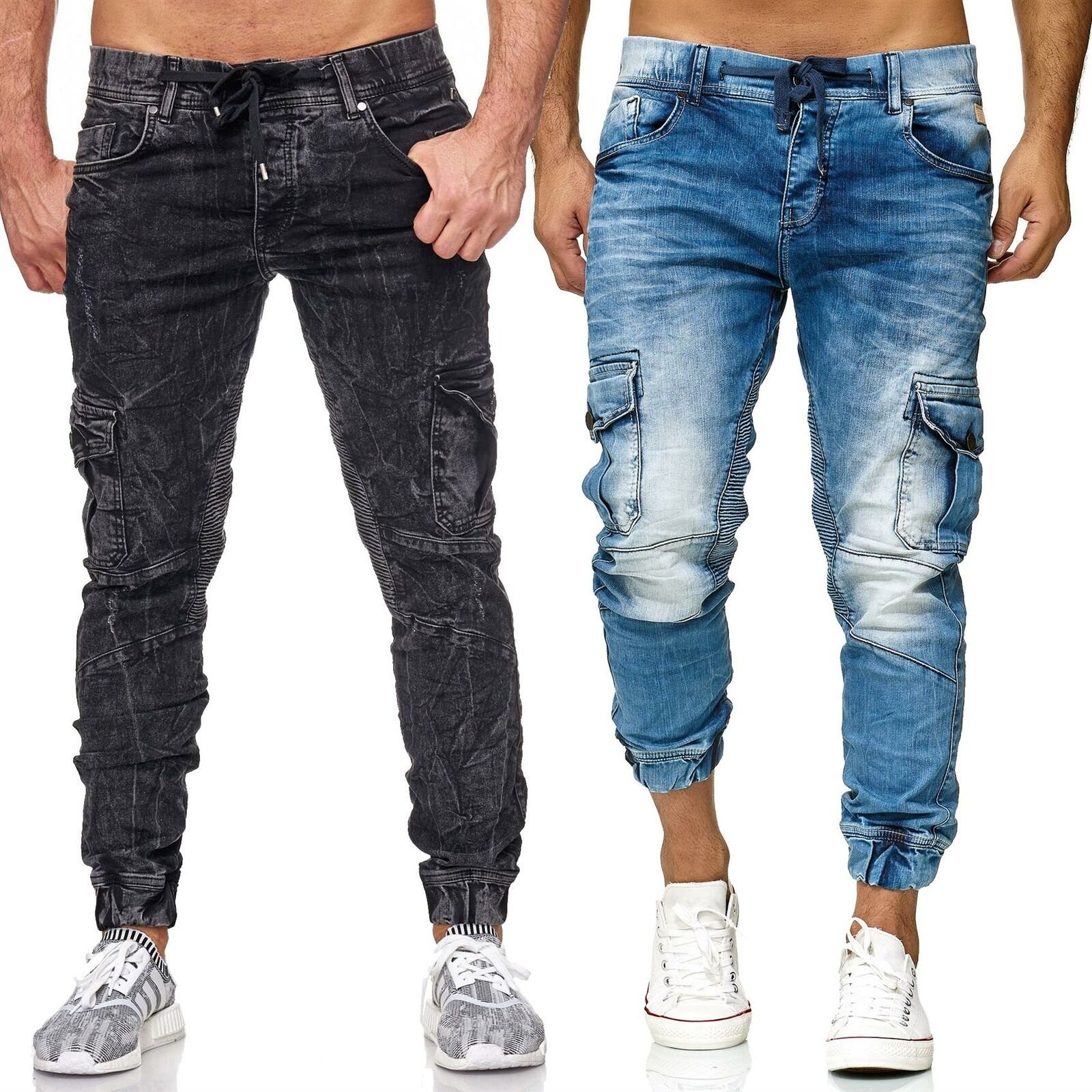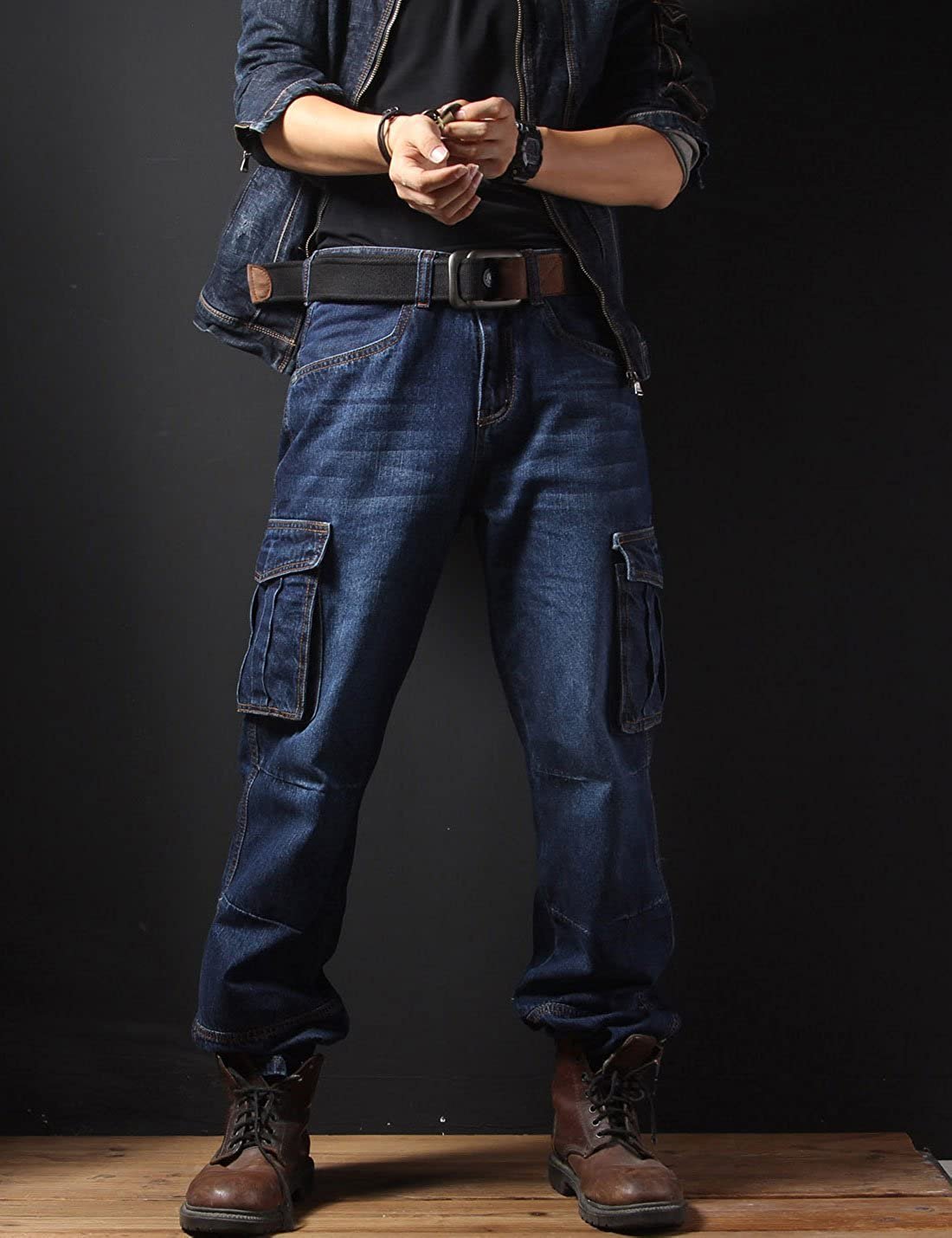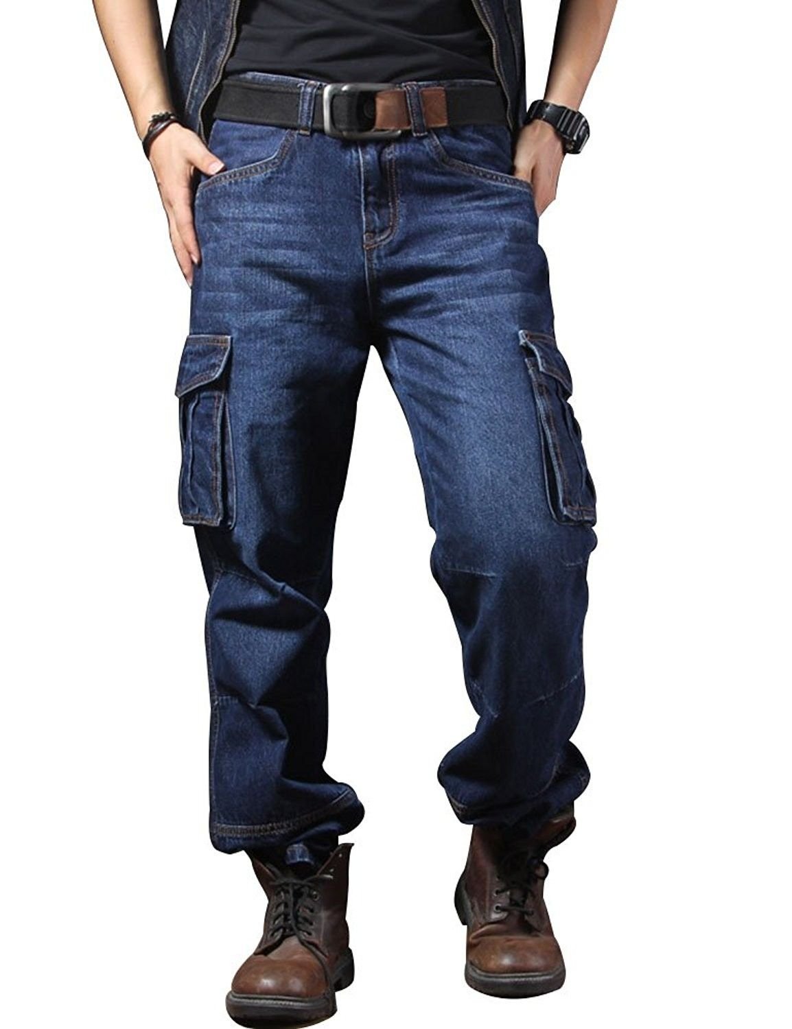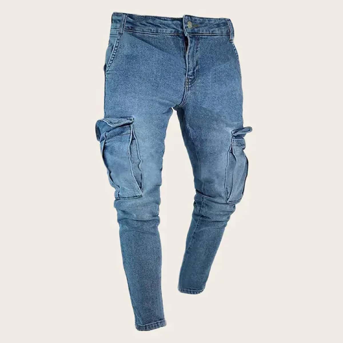 Мужские джинсы с карманами на штанинах