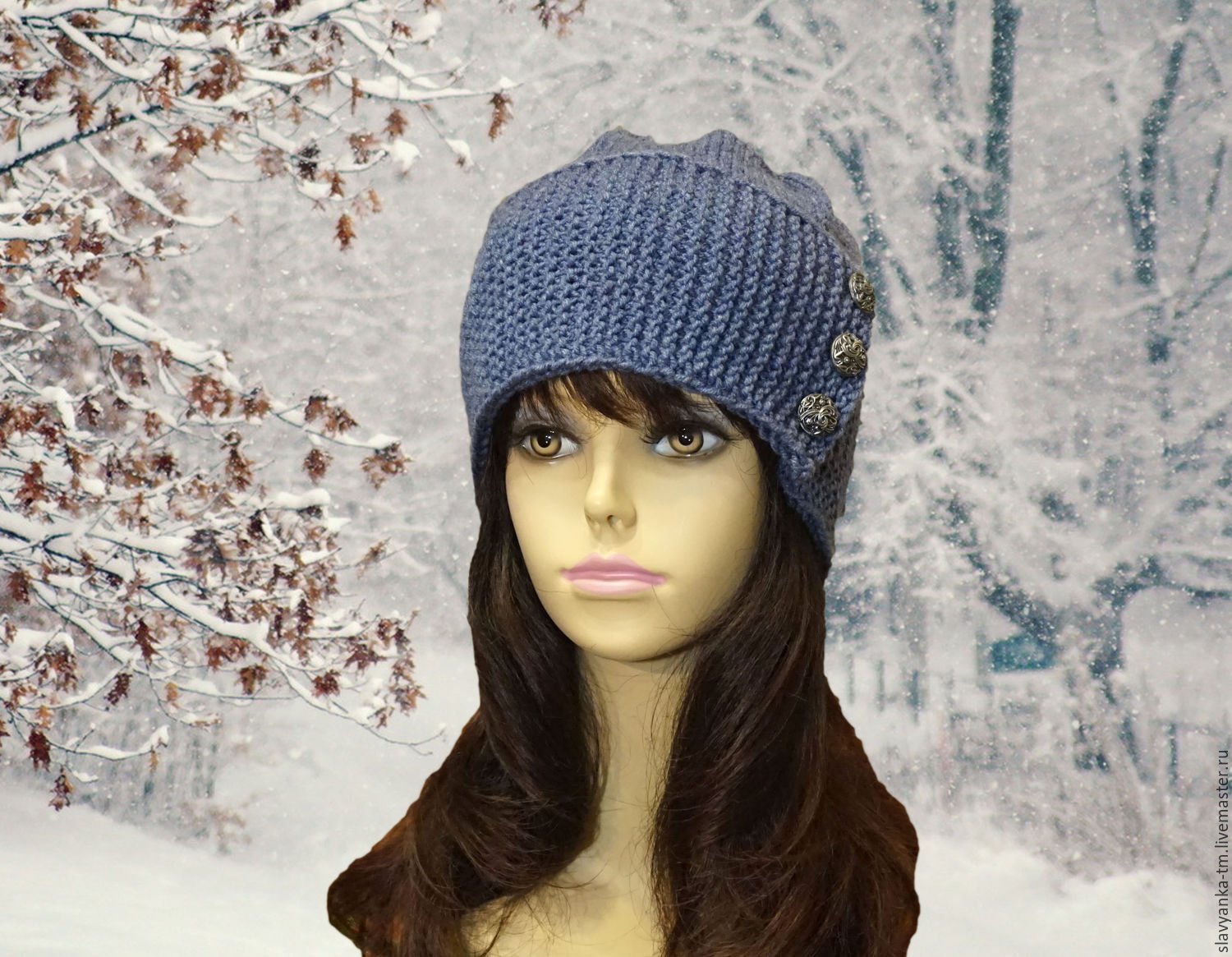 Вязаные шапки с пуговицами