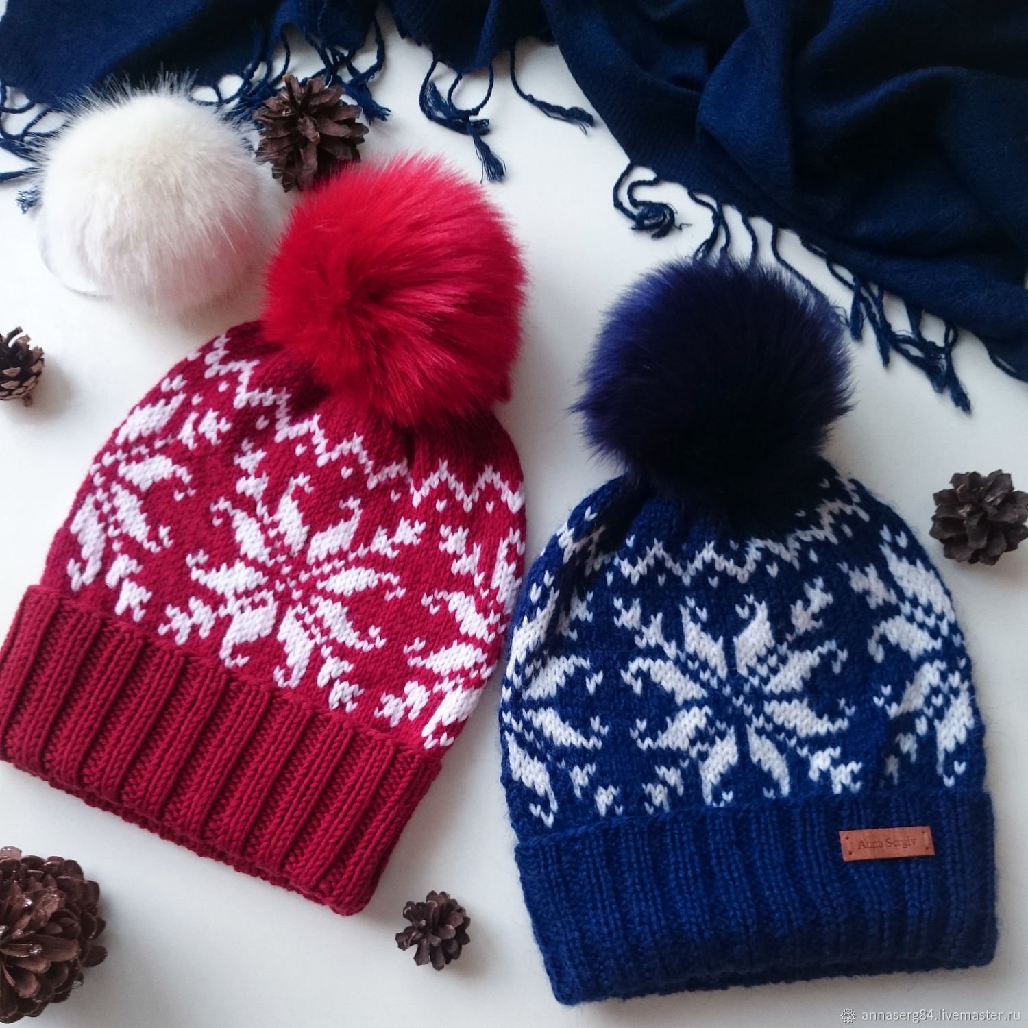 Вязаная шапка со снежинками