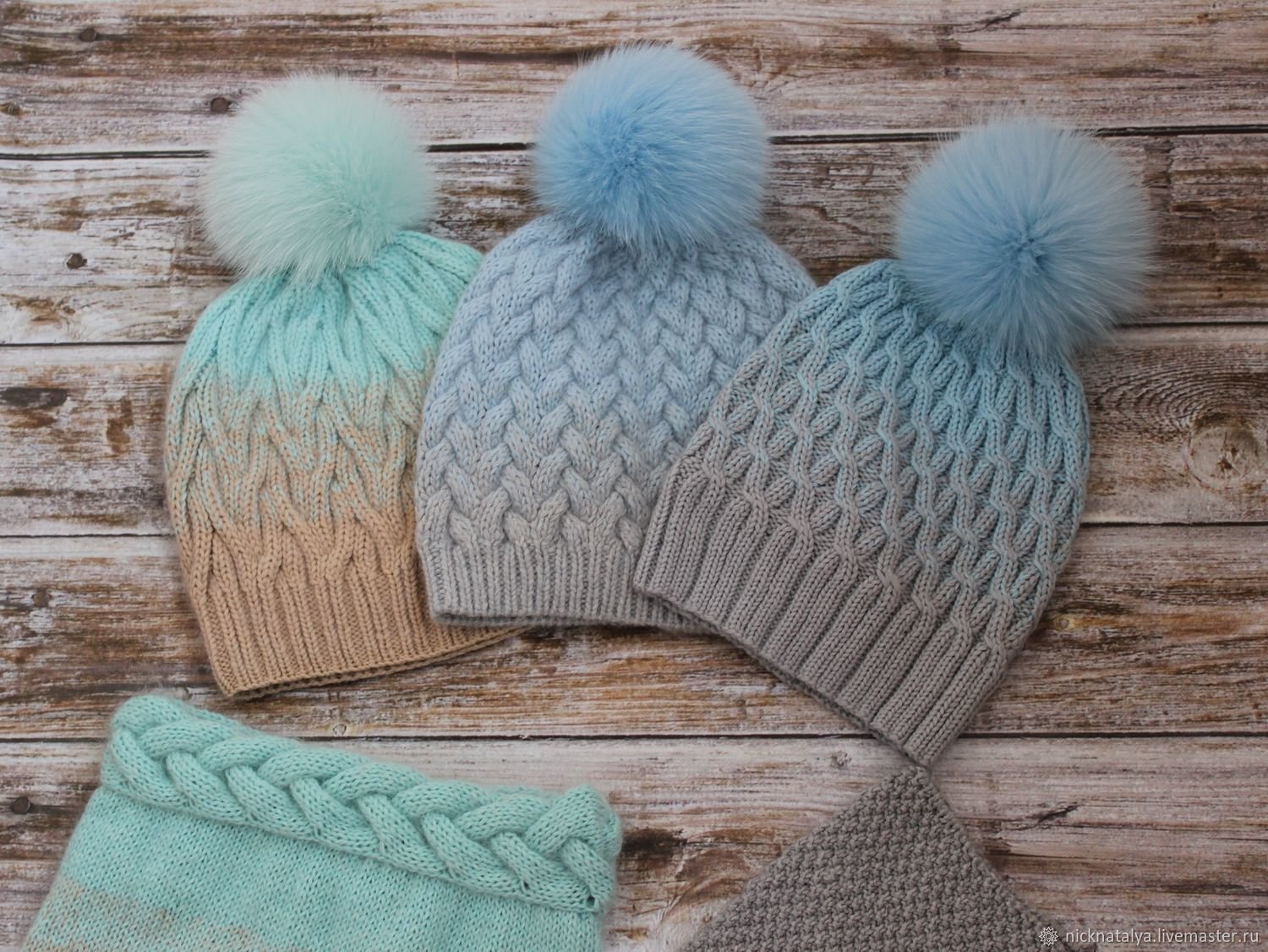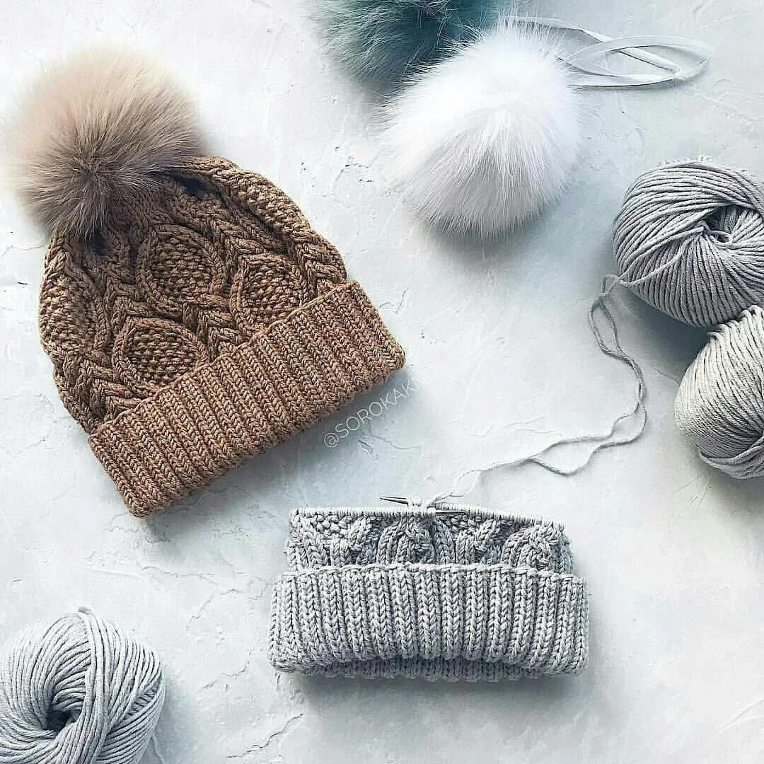 Пуховые вязаные шапки