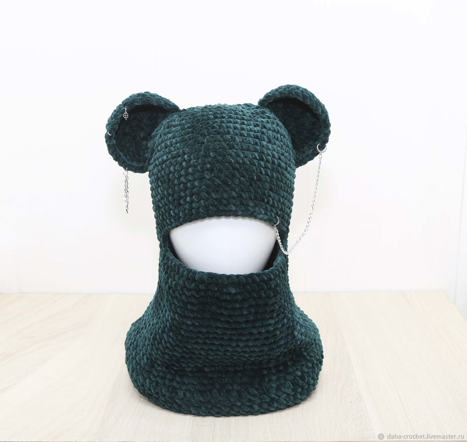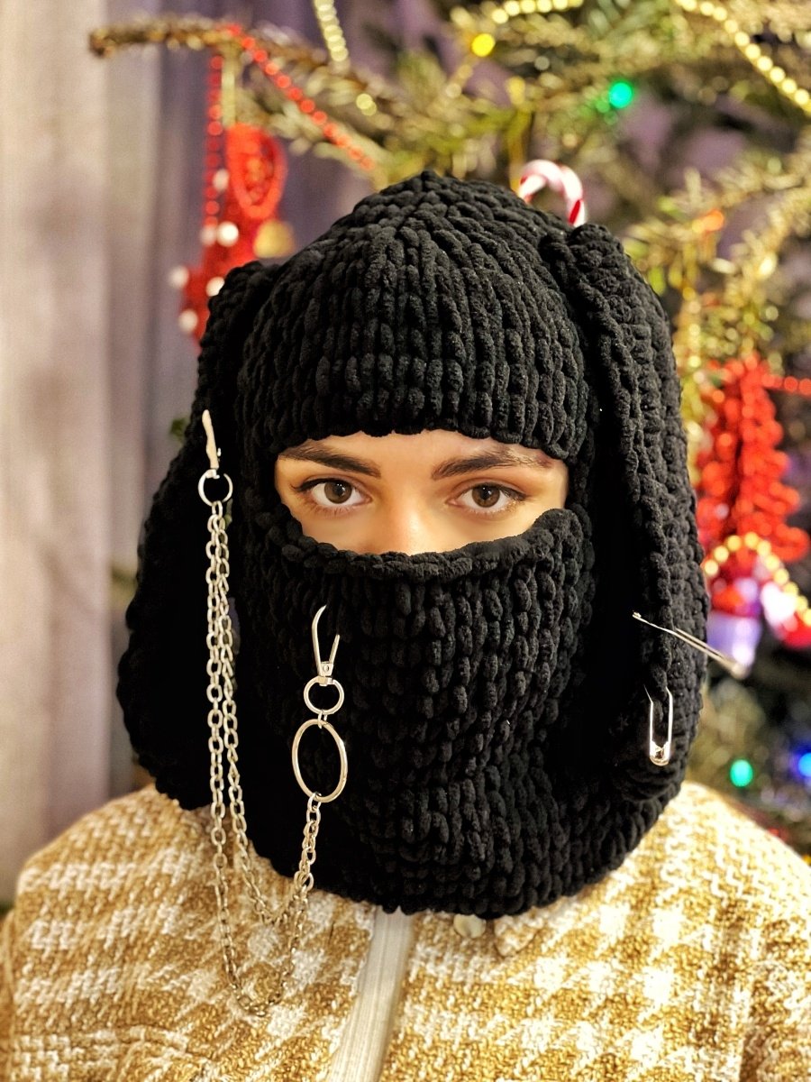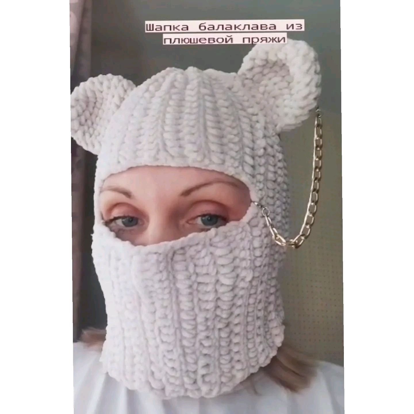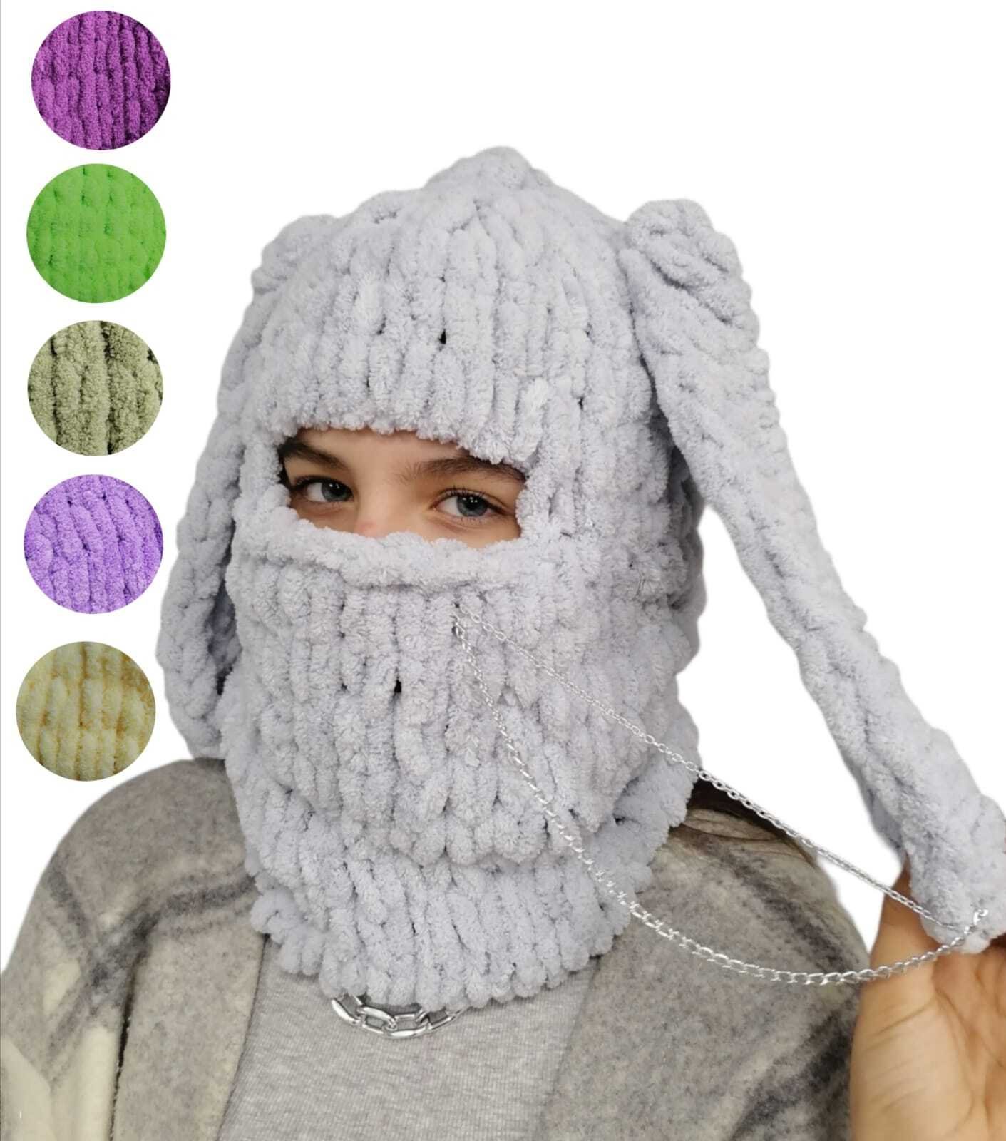 Балаклава вязаная с ушками и цепочкой