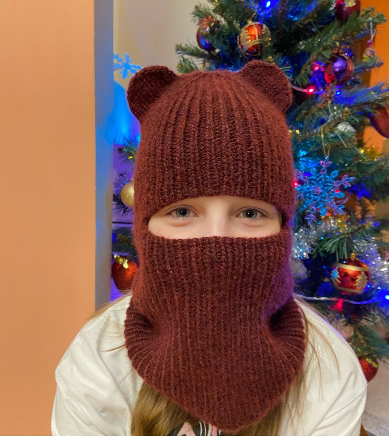 Балаклава вязаная с ушками мишки из тик ток