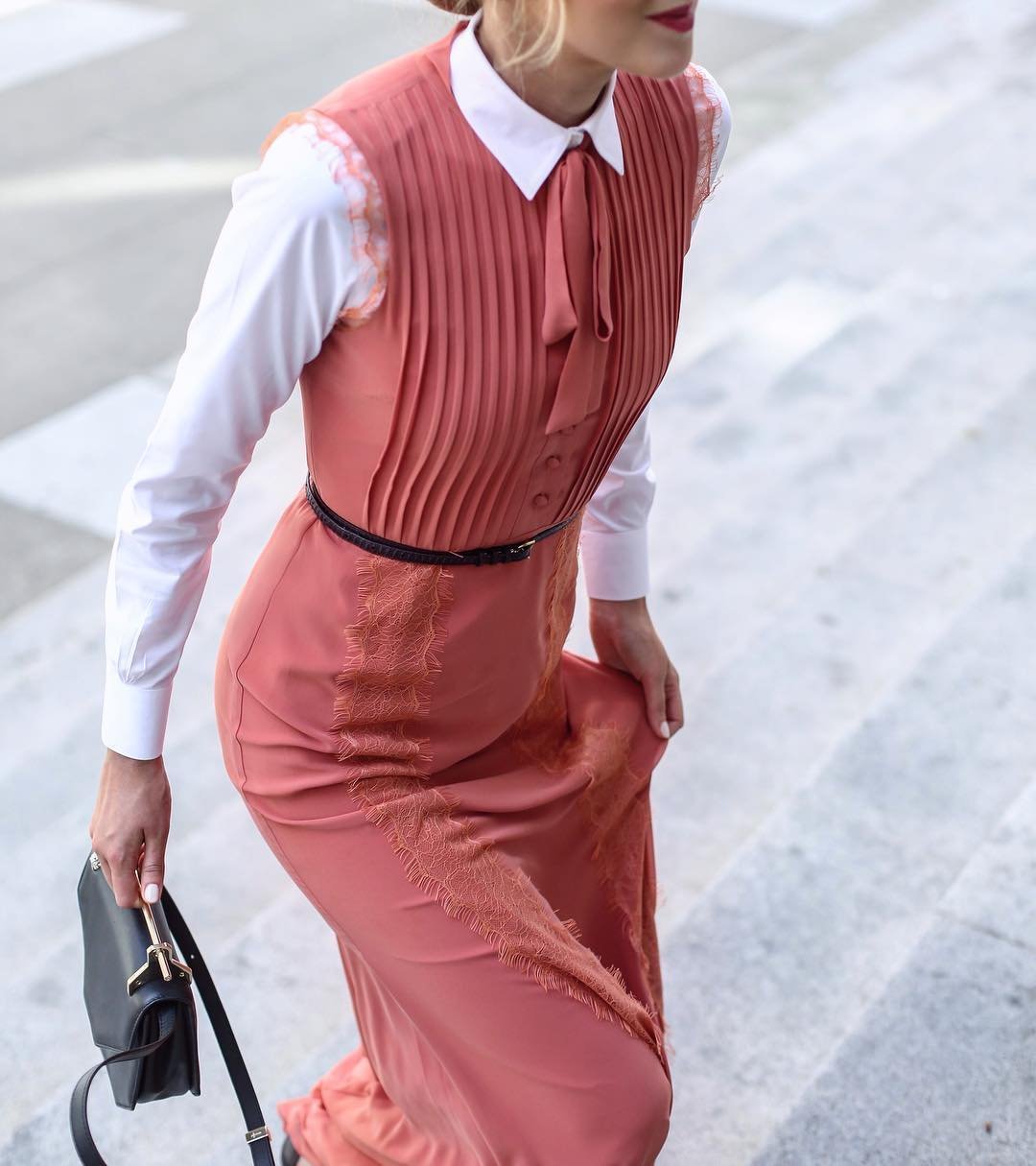 Кожаный топ поверх платья