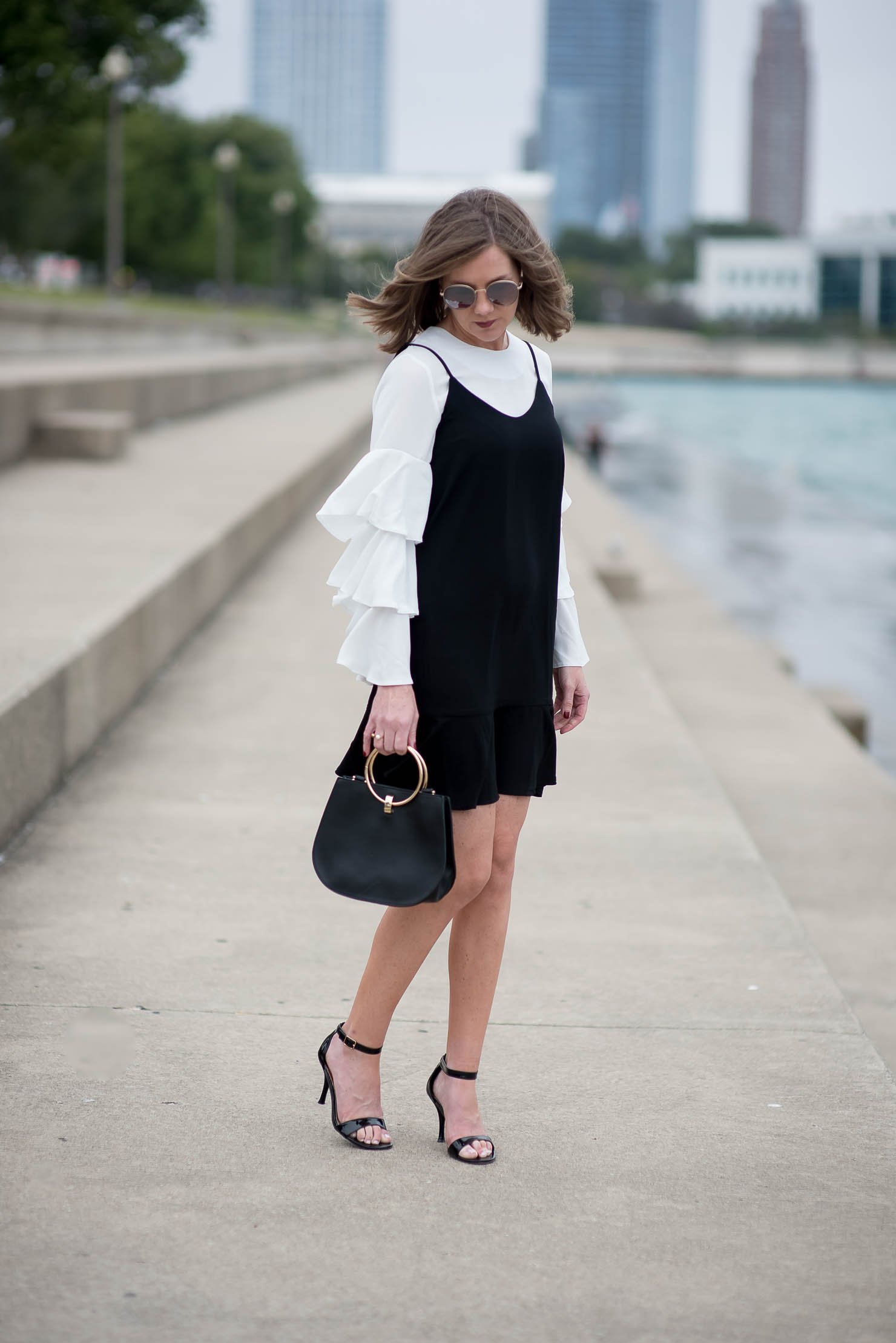 Черное платье с белой рубашкой