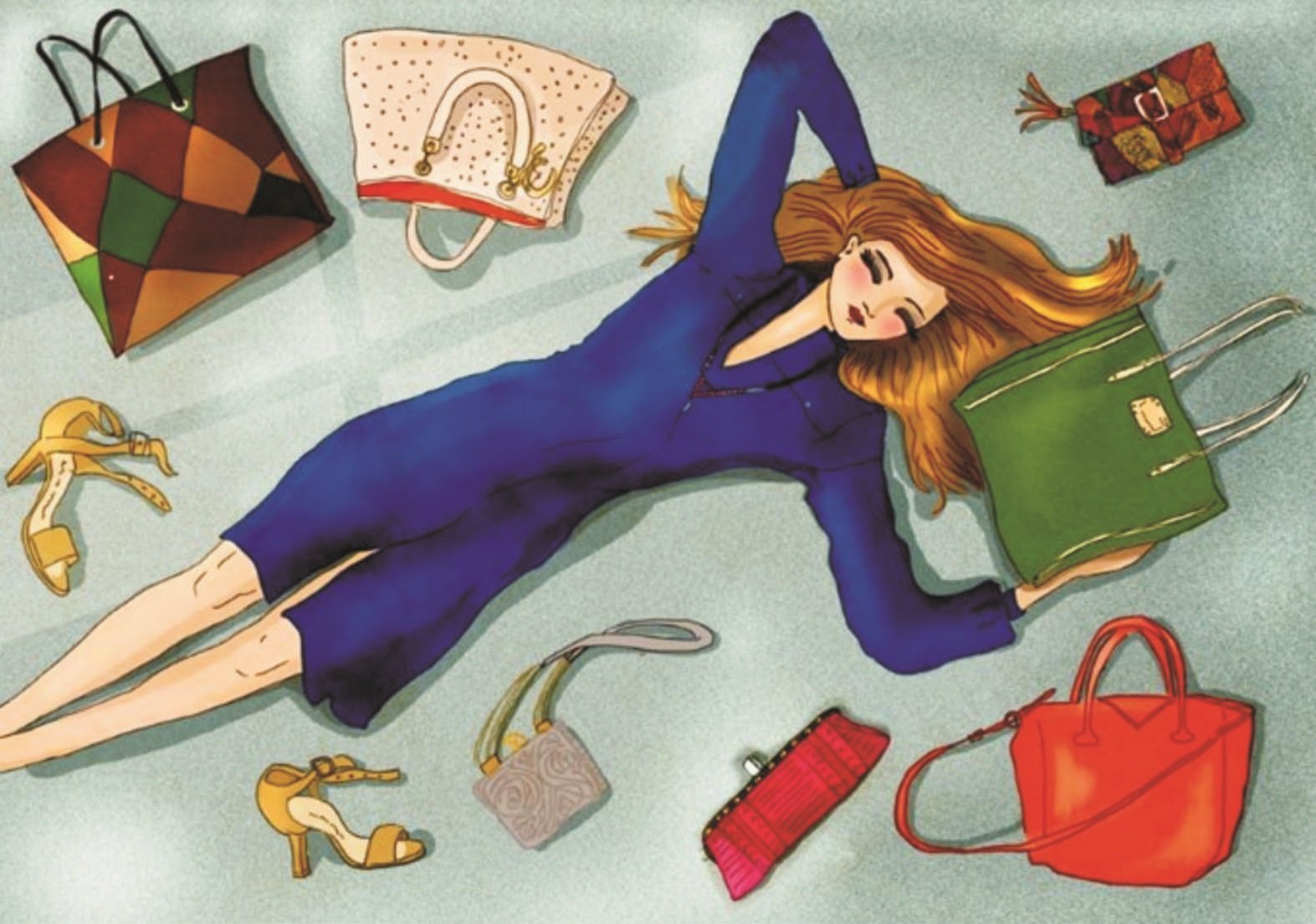 Девушка с кучей сумок