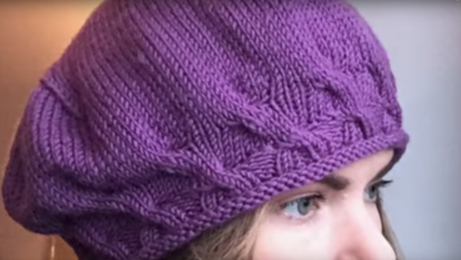 Сиреневый берет спицами