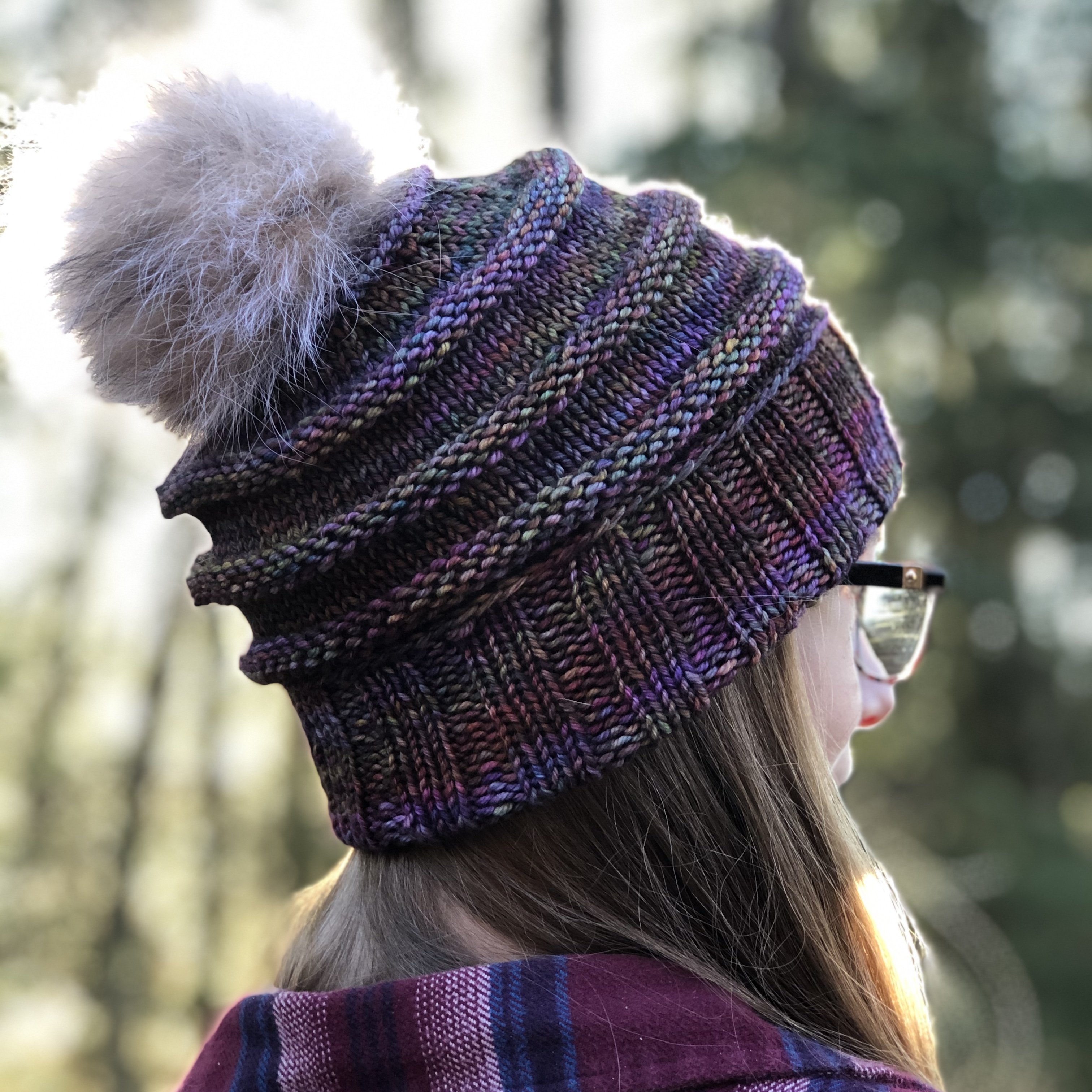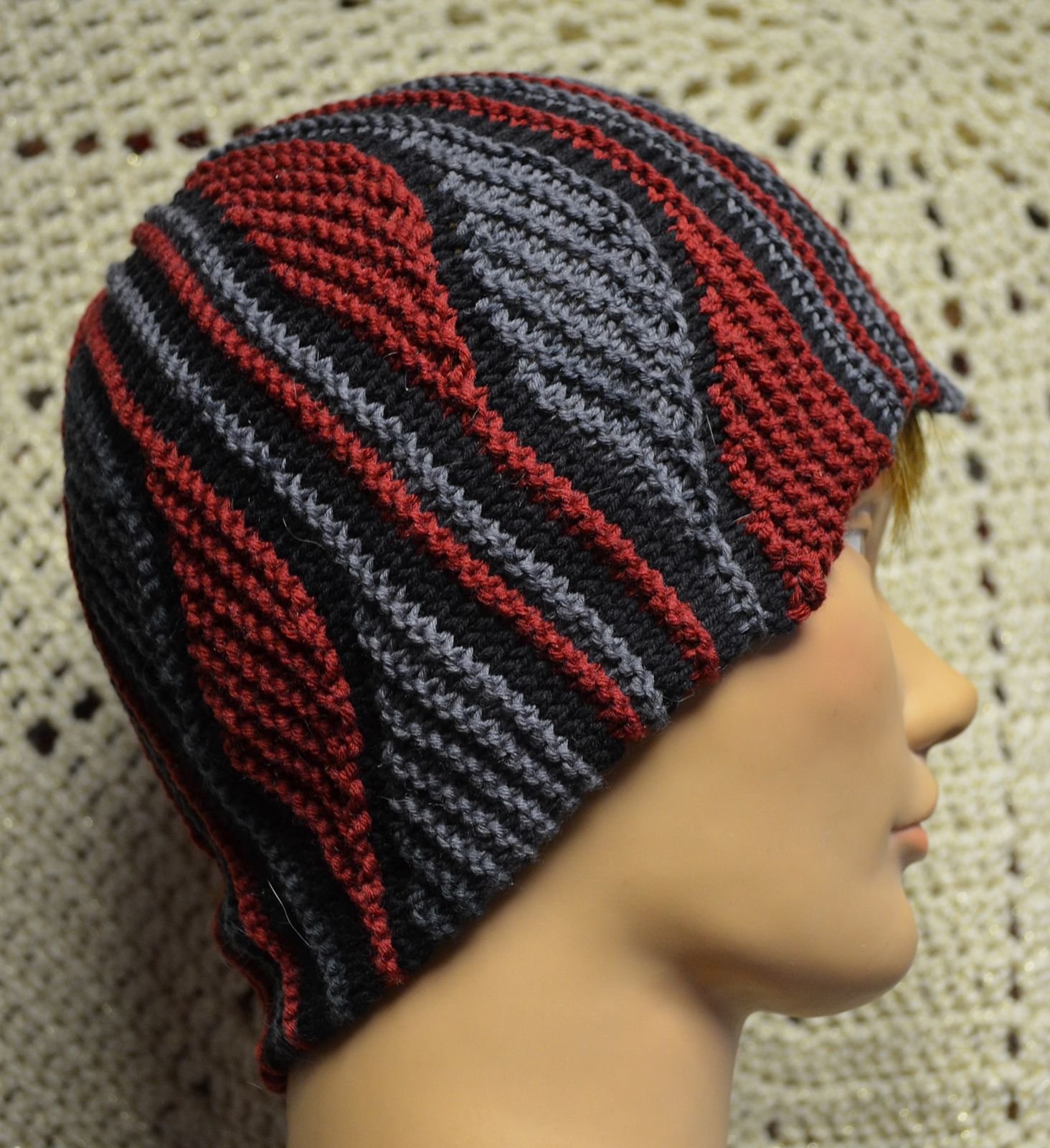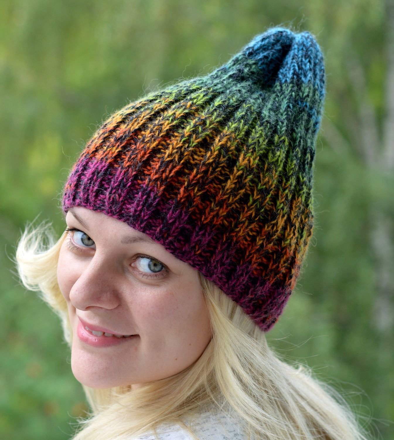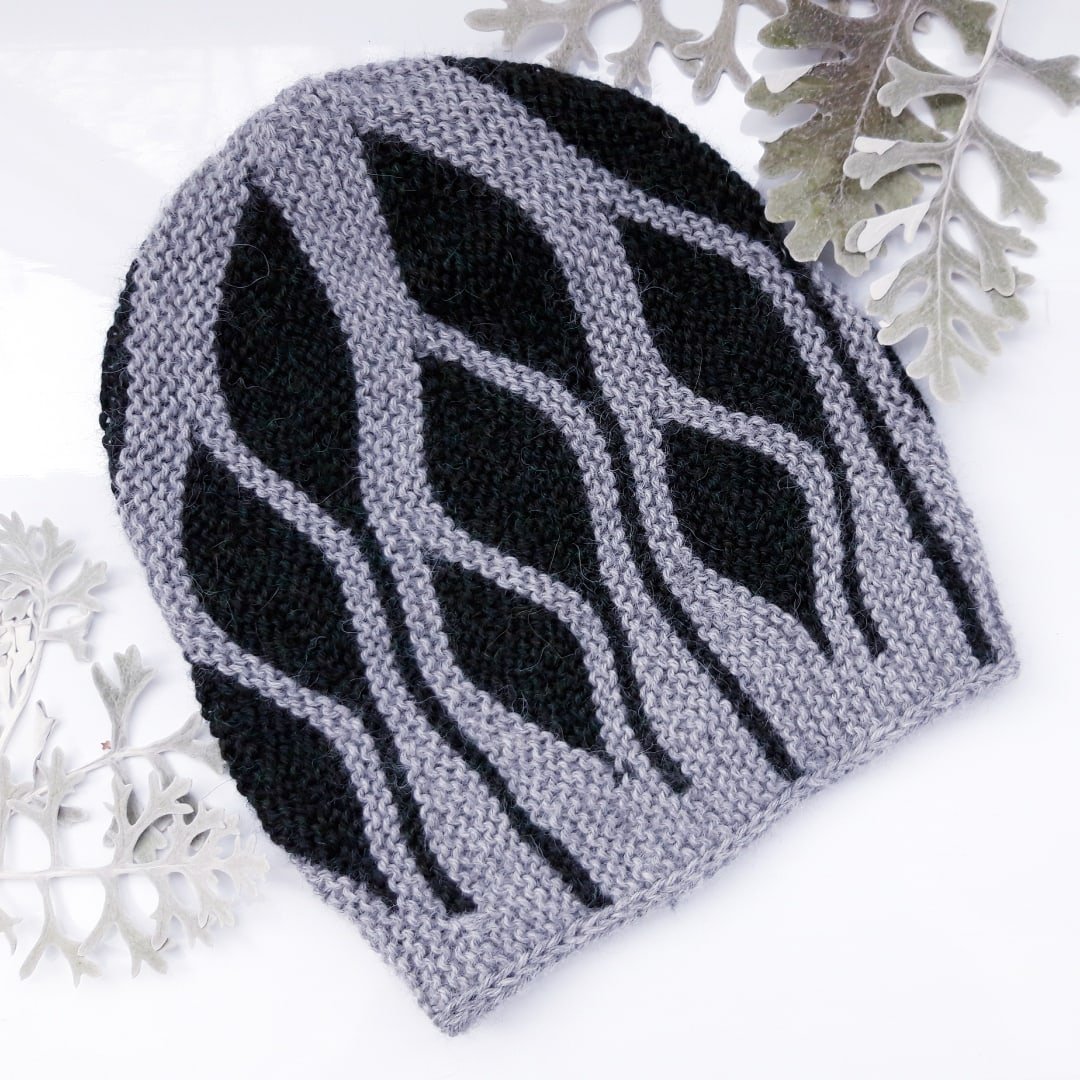 Вязаная шапка в технике свинг