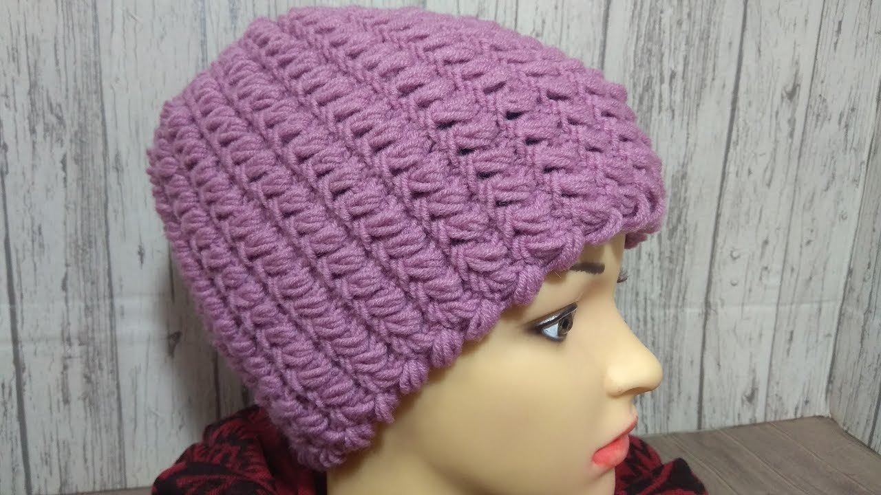 Шапка объемным узором укороченными рядами
