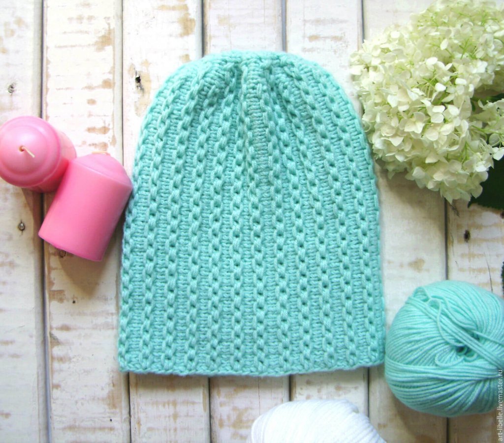 Схема вязания шапки платочной вязкой спицами
