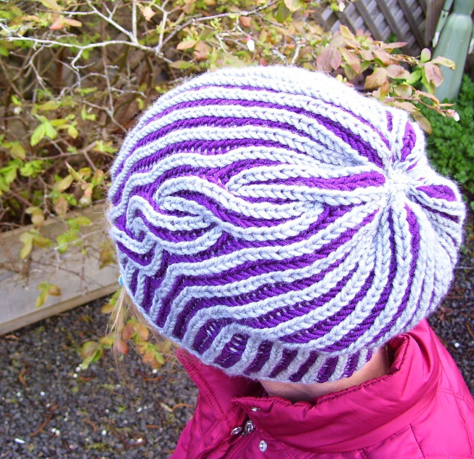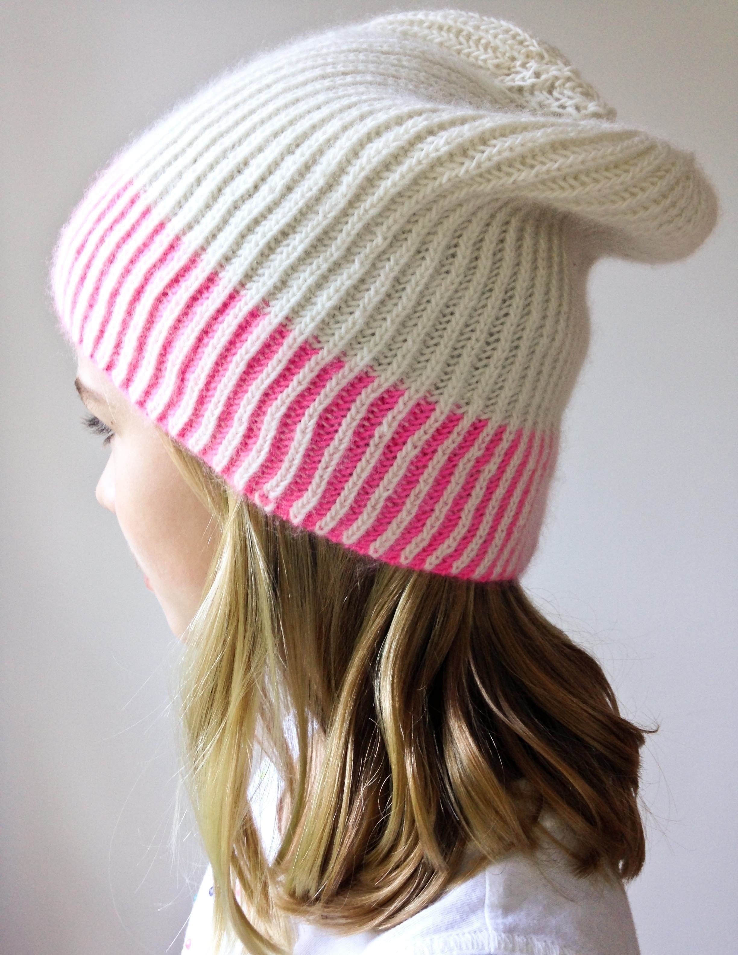 Вязаные шапки укороченными поперечными рядами