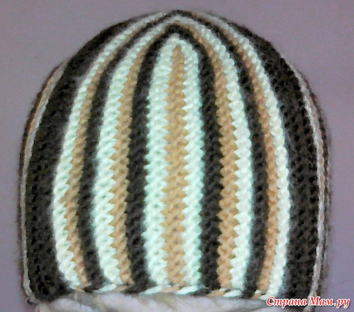 Полосатая шапка укороченными рядами