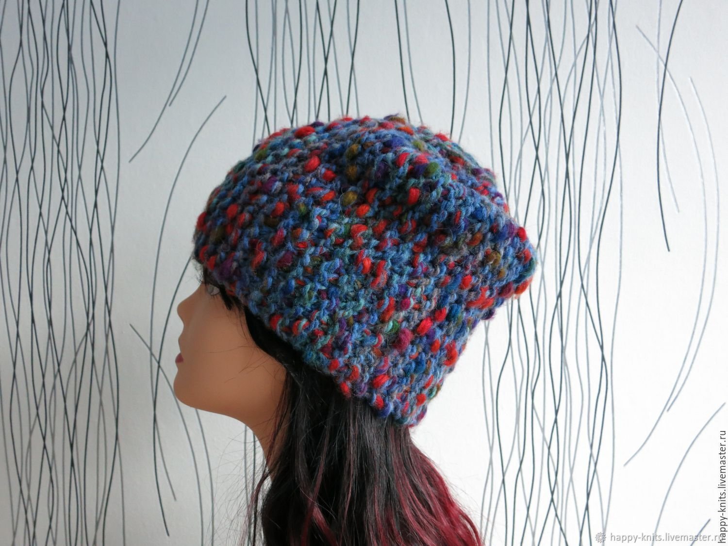 Шапка из разноцветной пряжи