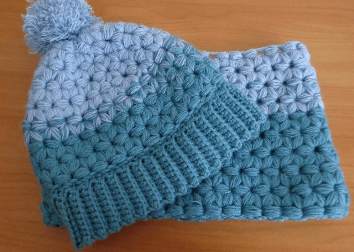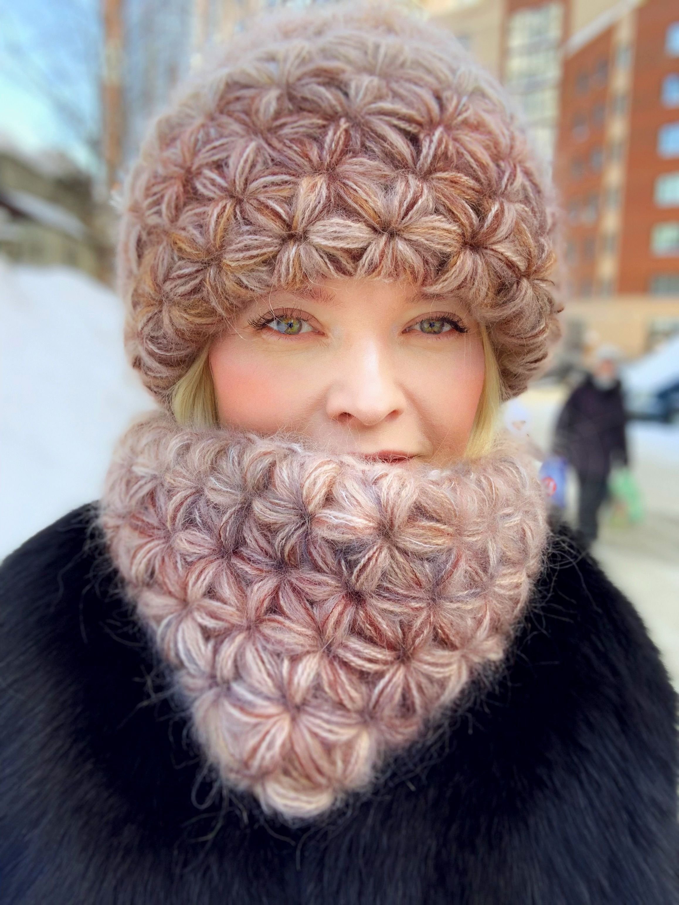 Шапка и снуд крючком пышными столбиками