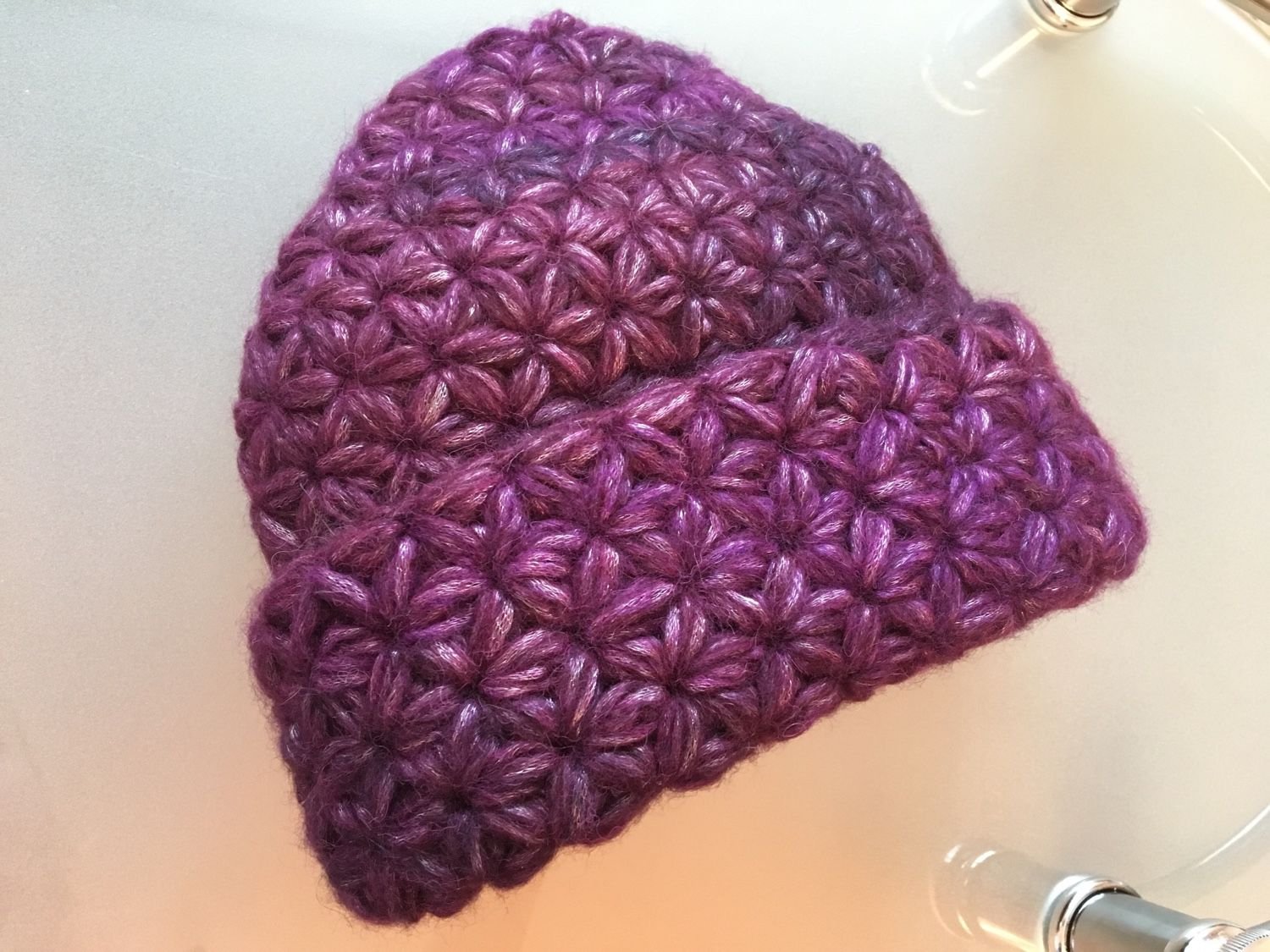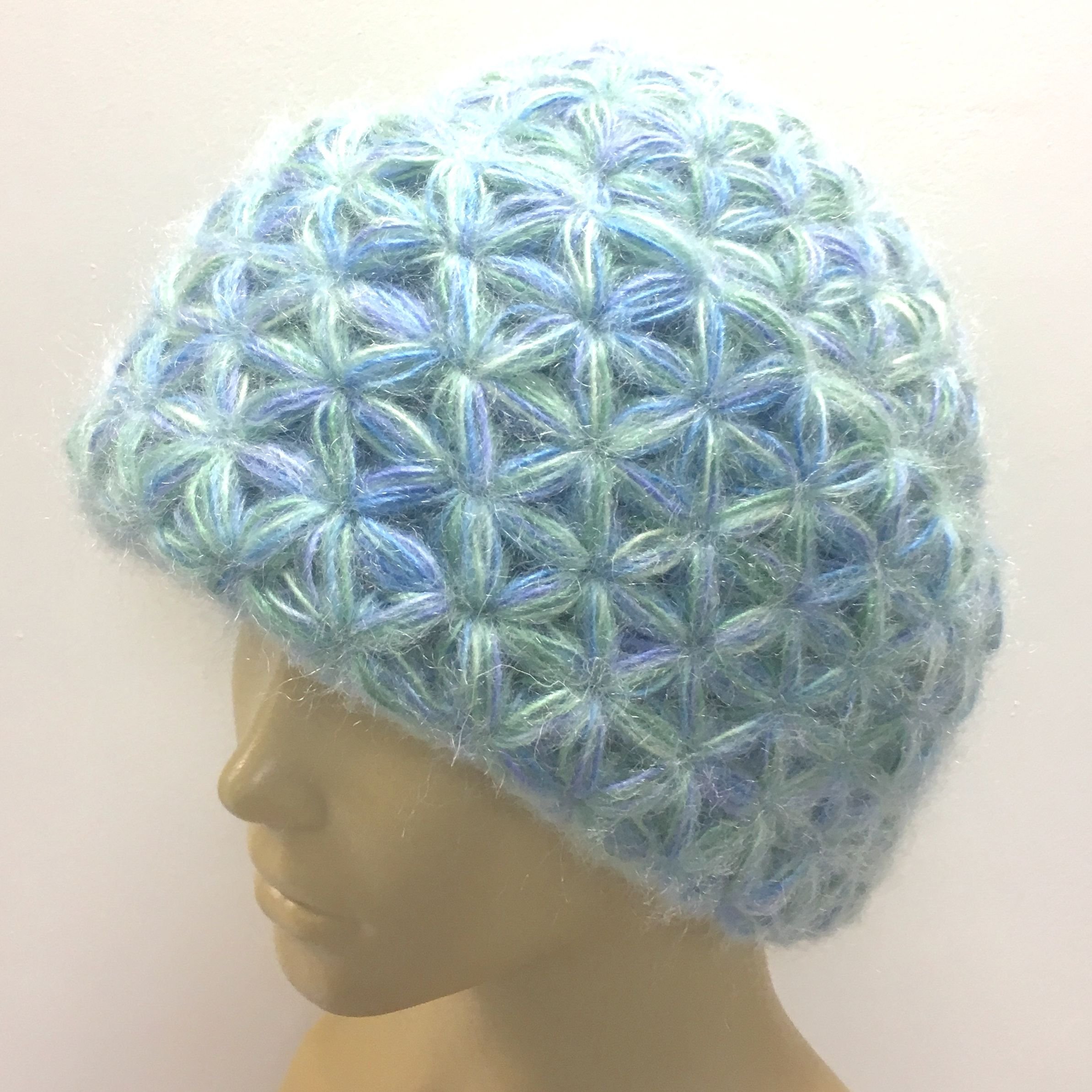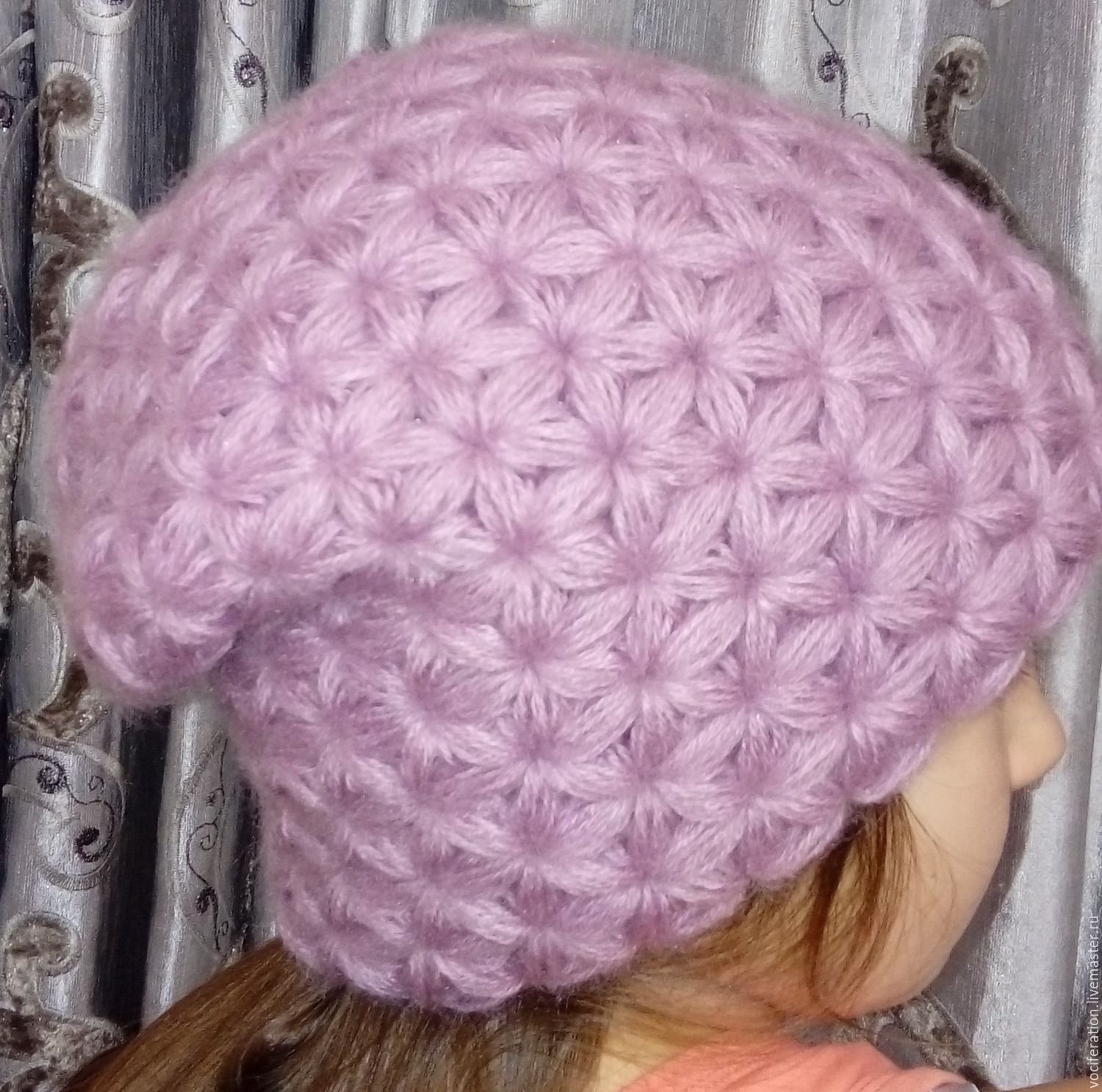 Берет узором звездочки крючком