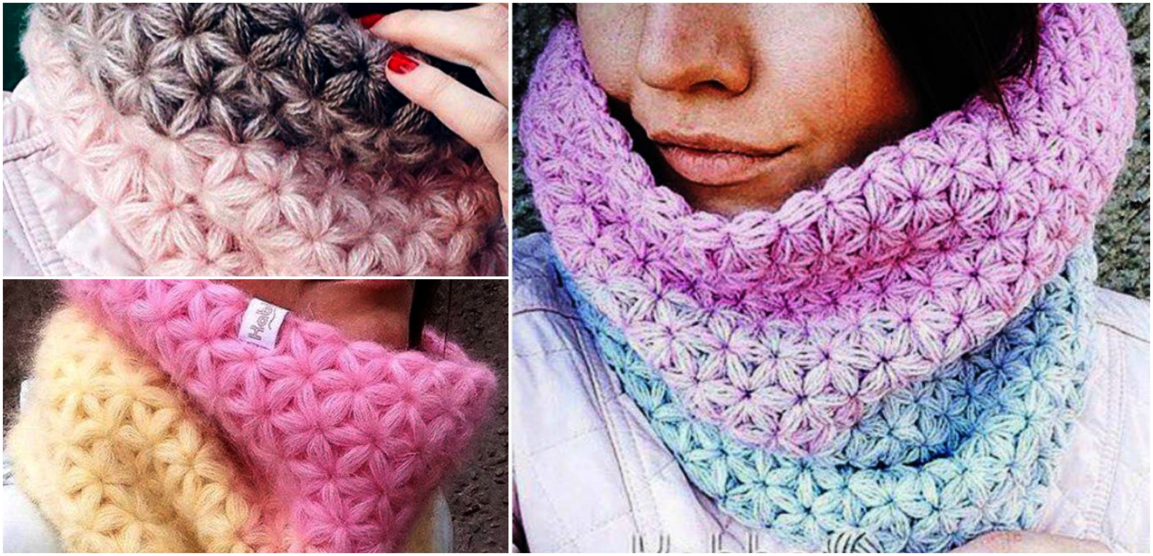Вязание крючком снуд Звездочка