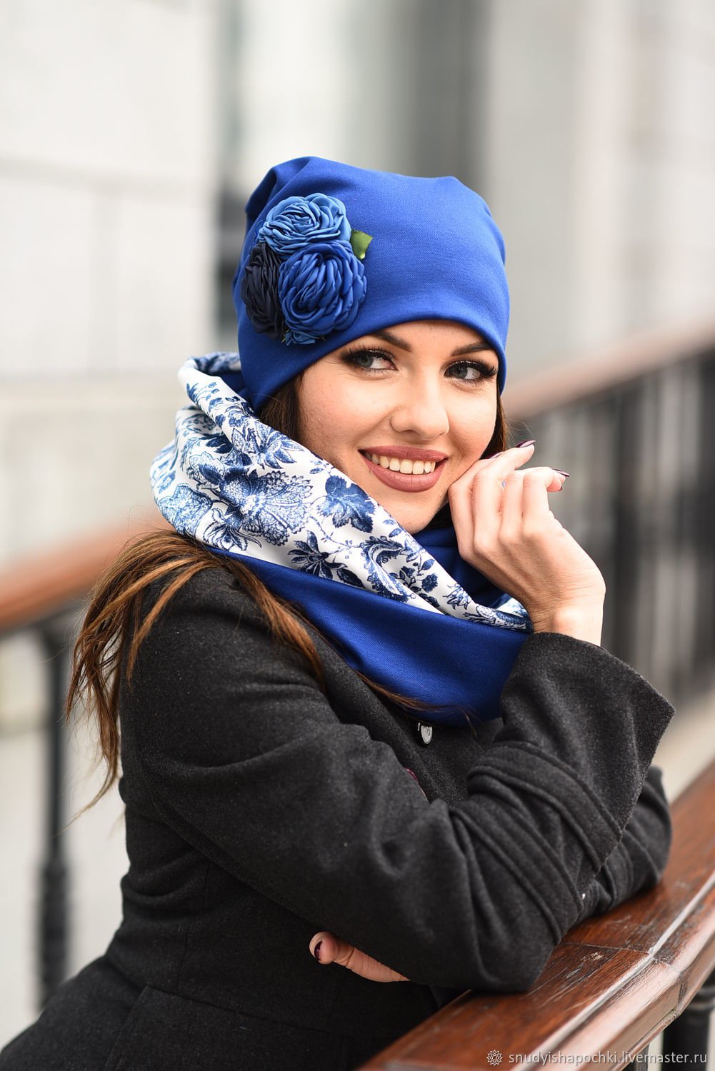 Синяя куртка и серая шапка