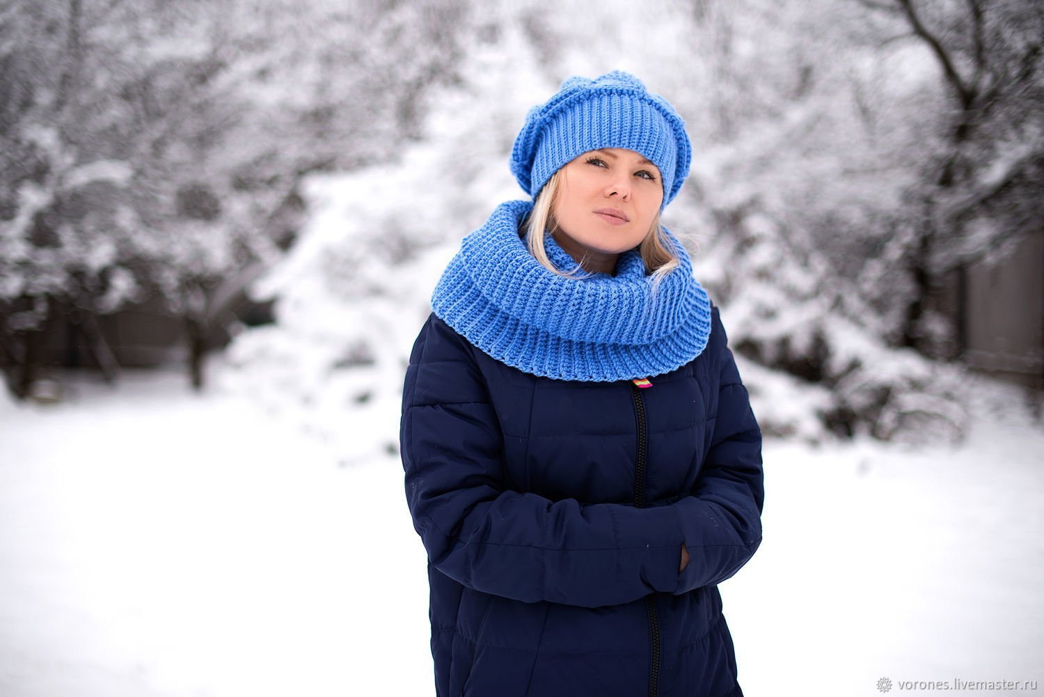 Голубая вязаная шапка