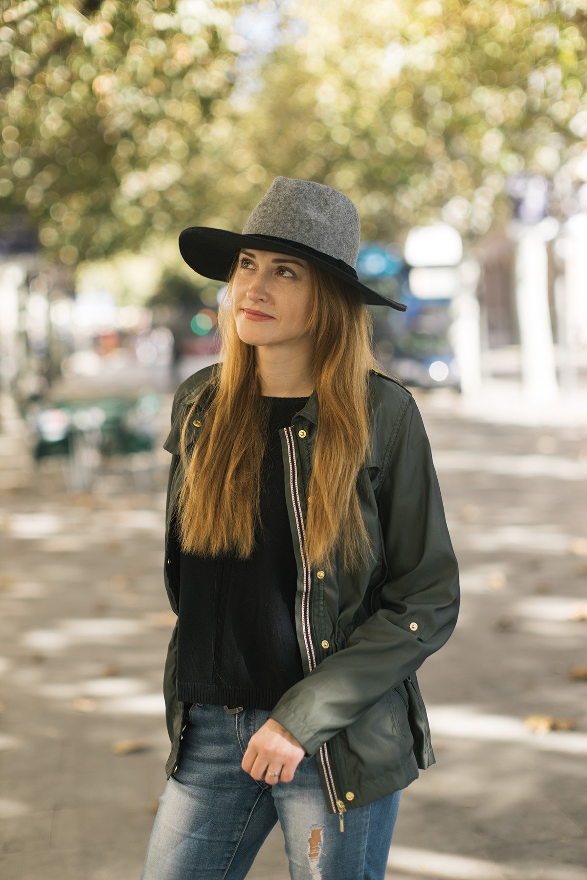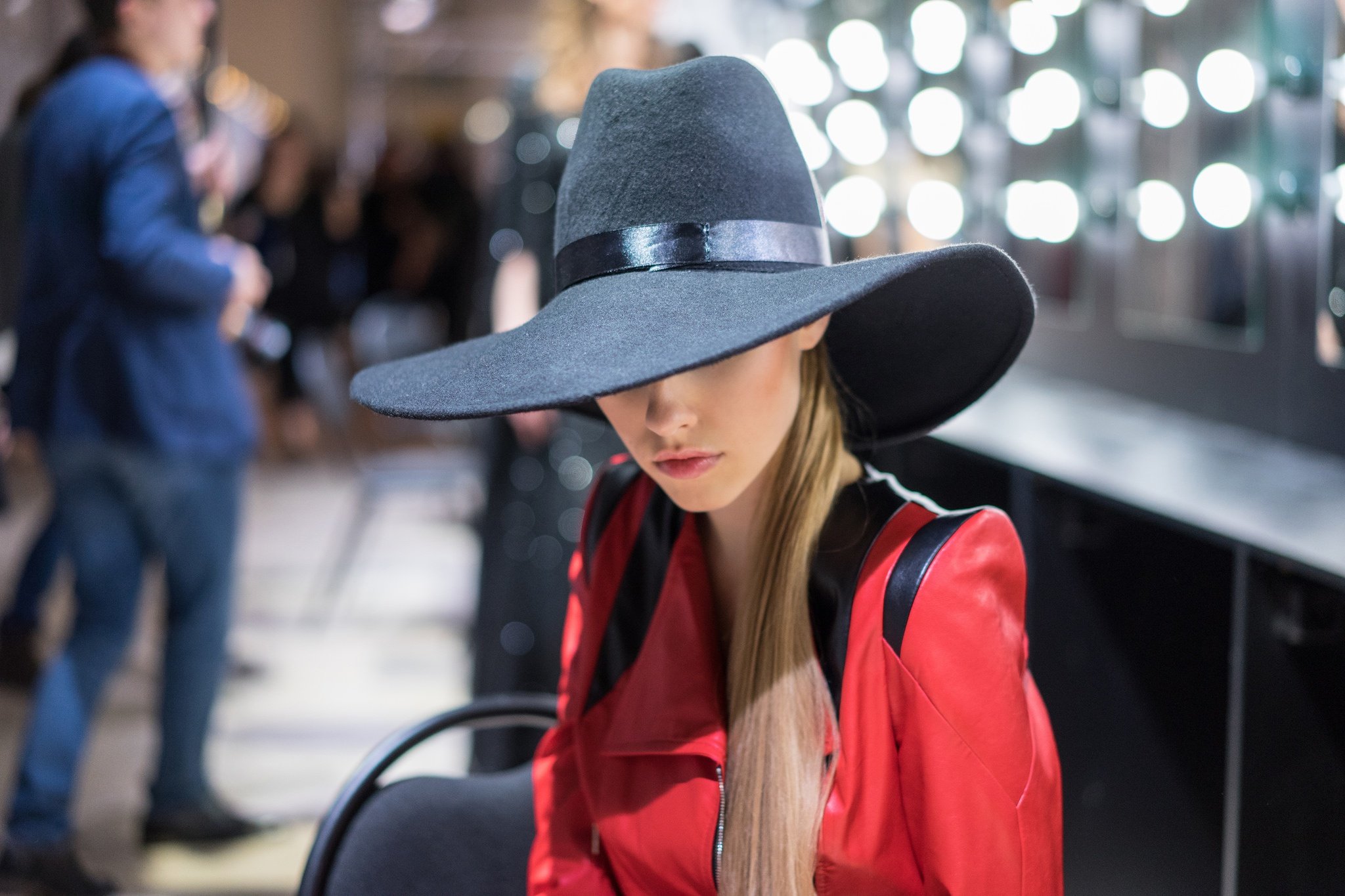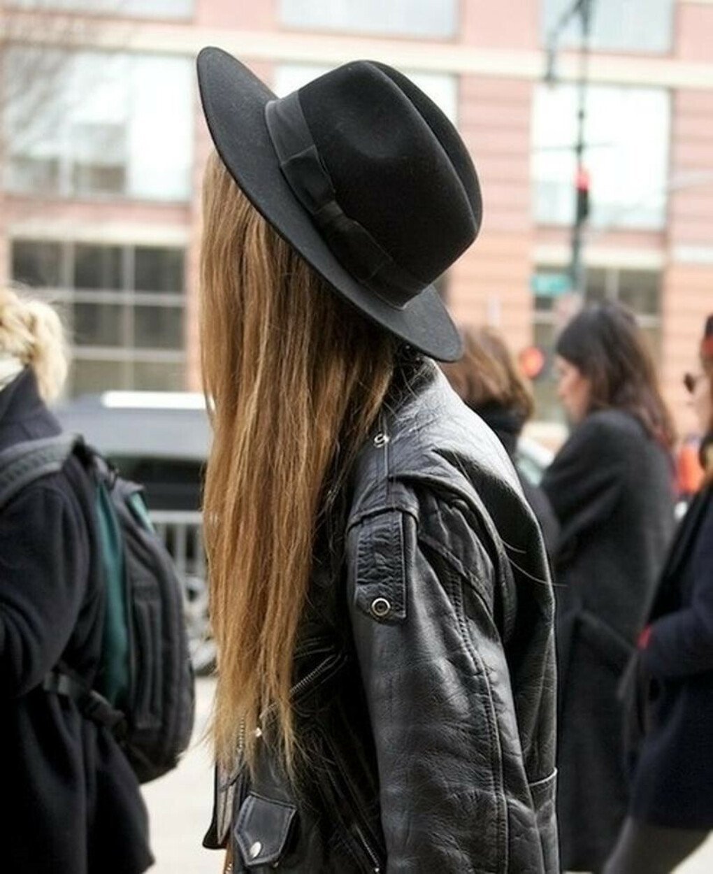 Фетровая шляпа с кожаной курткой