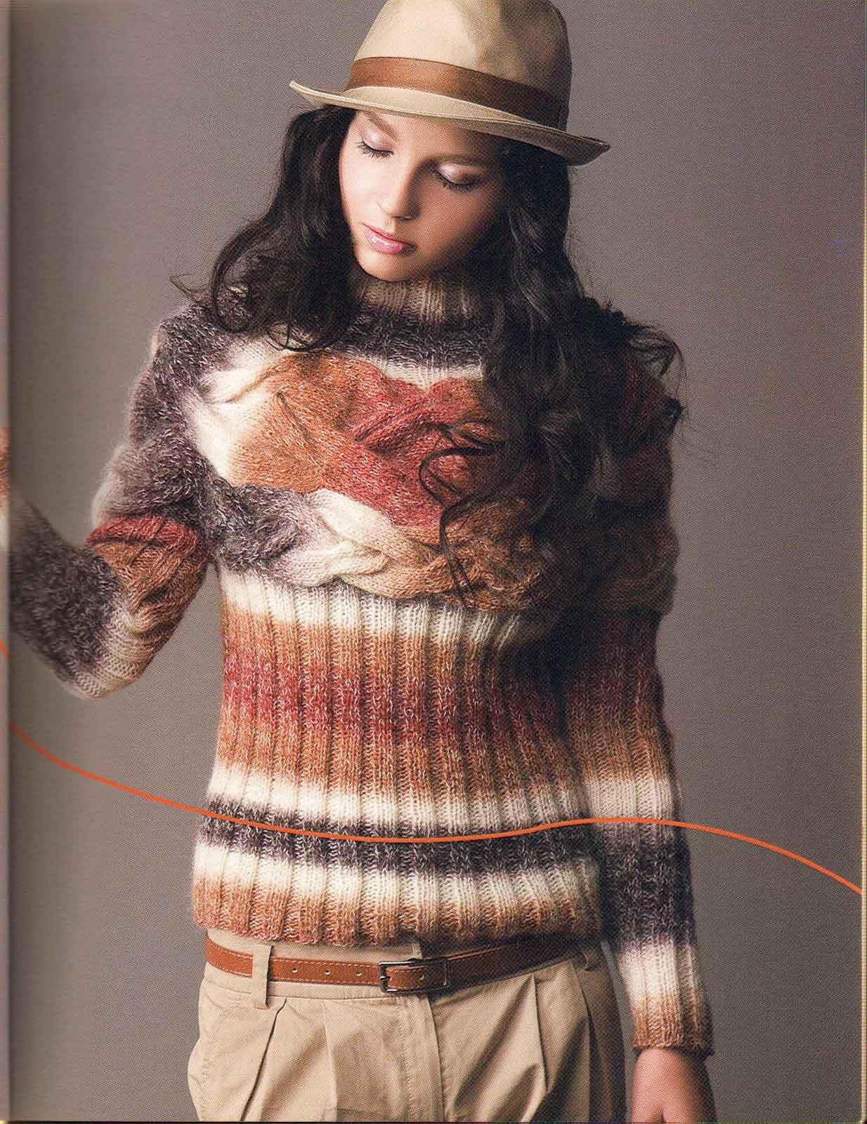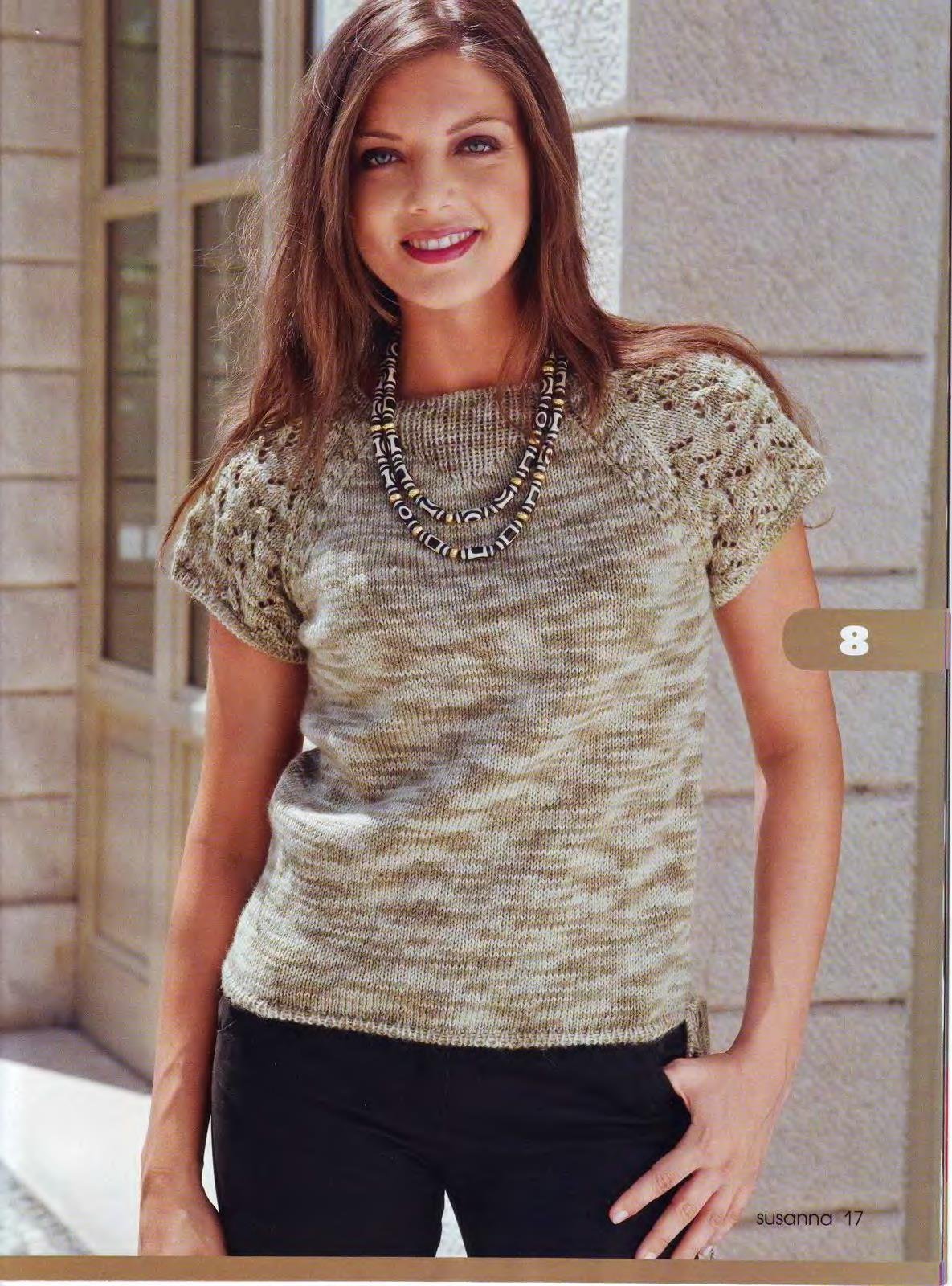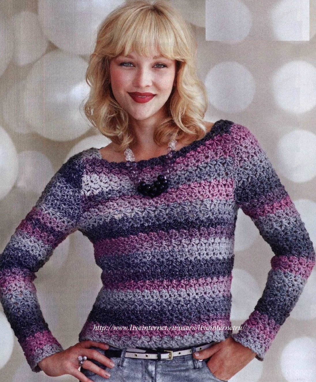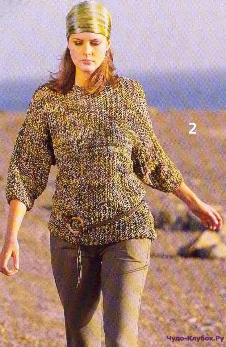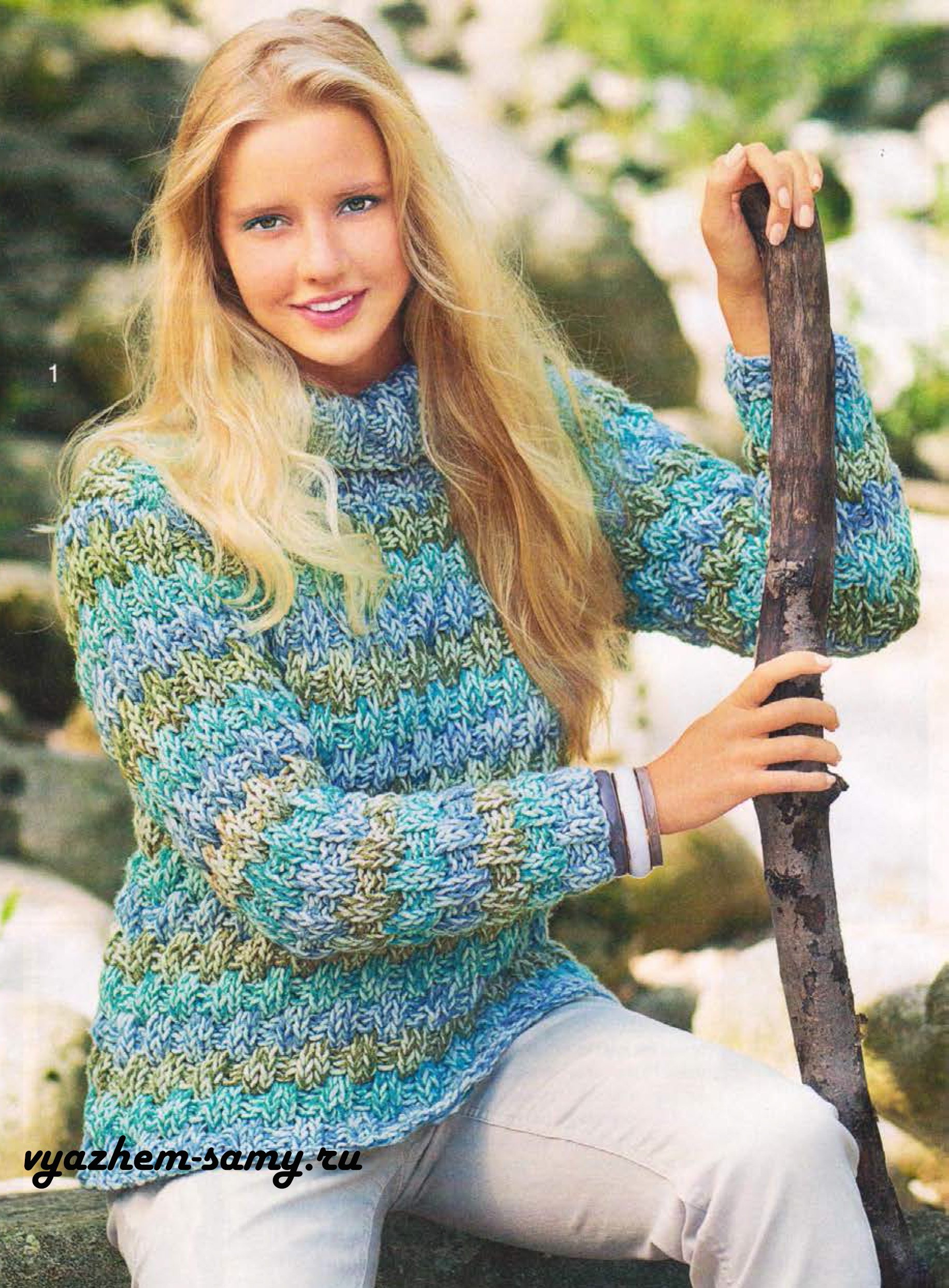 Вязаный свитер из пестрой пряжи с коротким рукавом