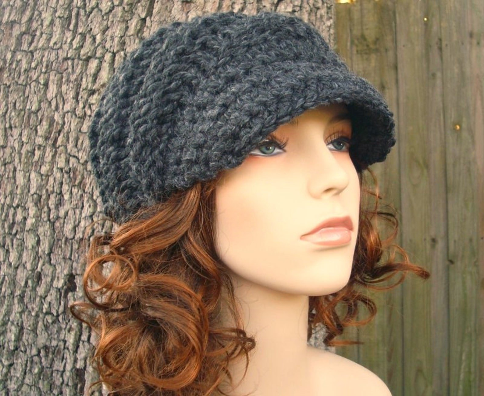 Вязаная шляпка с козырьком женская