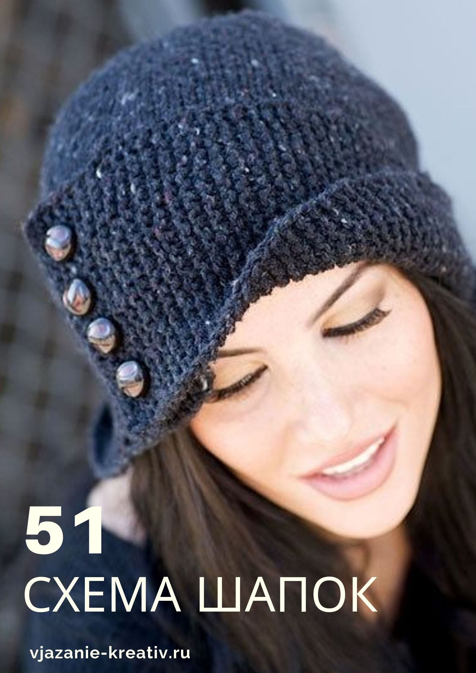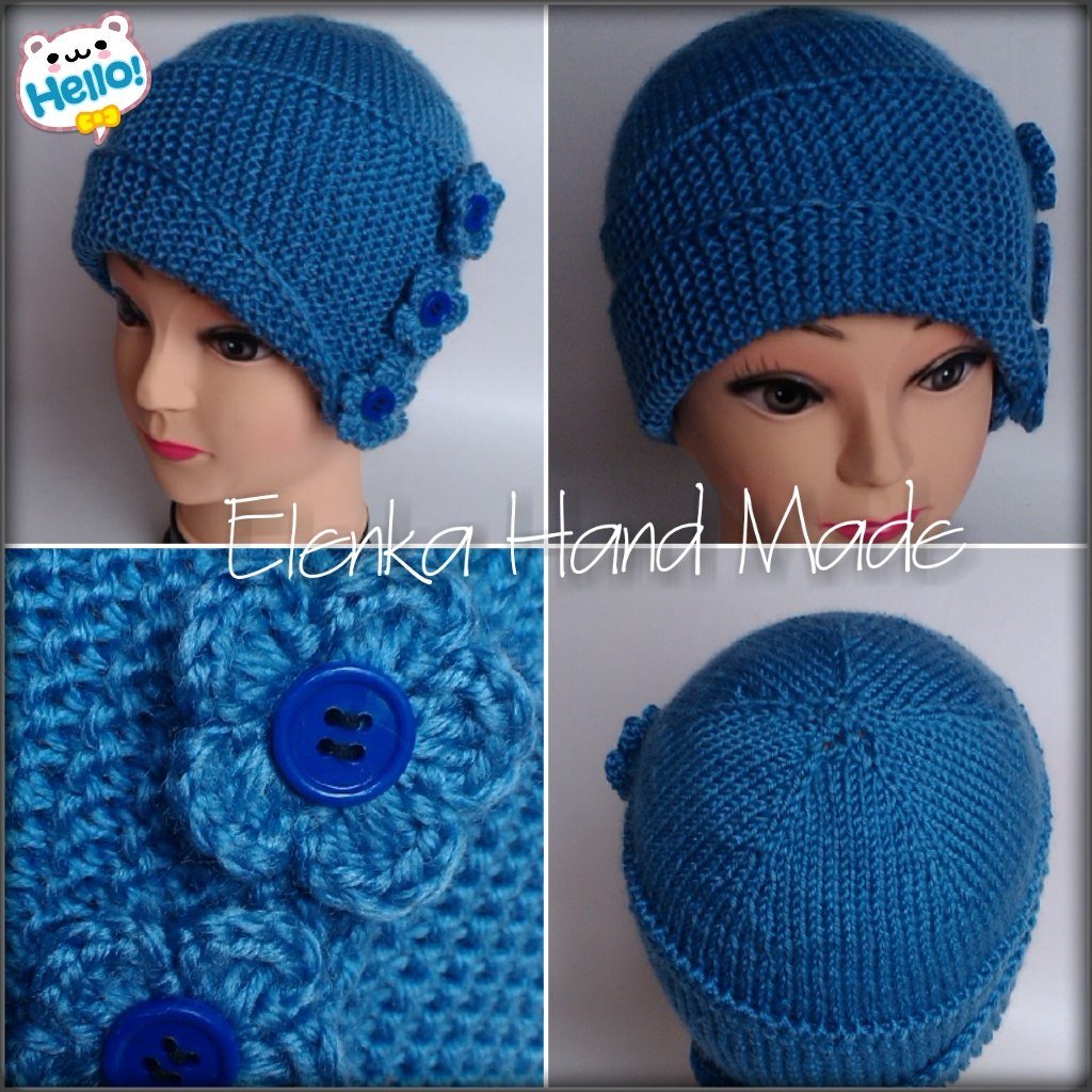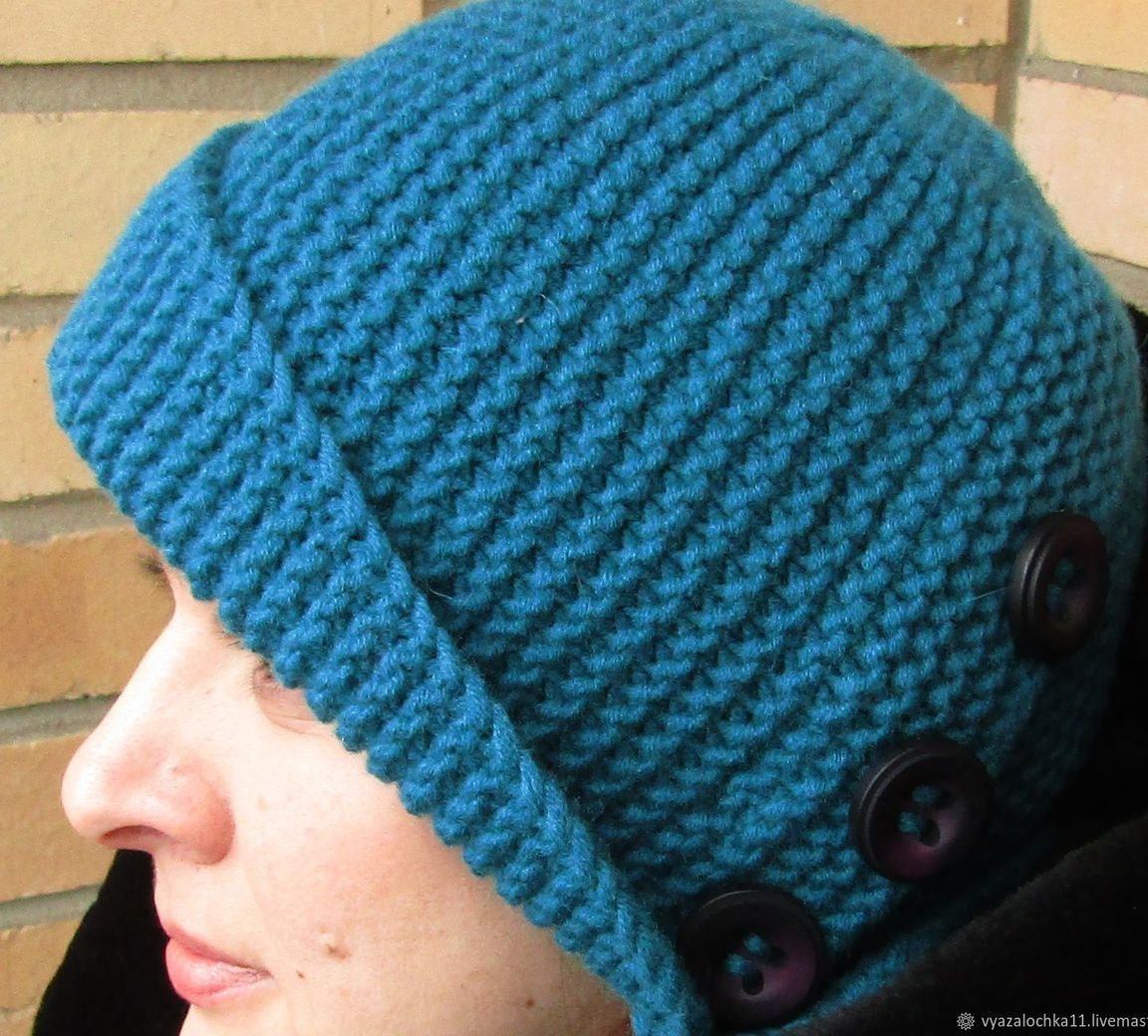 Шапка с пуговицами сбоку спицами