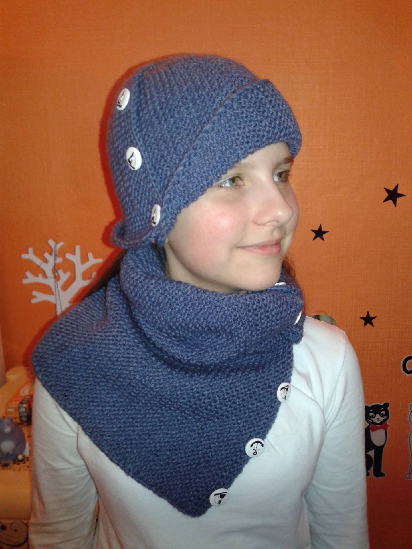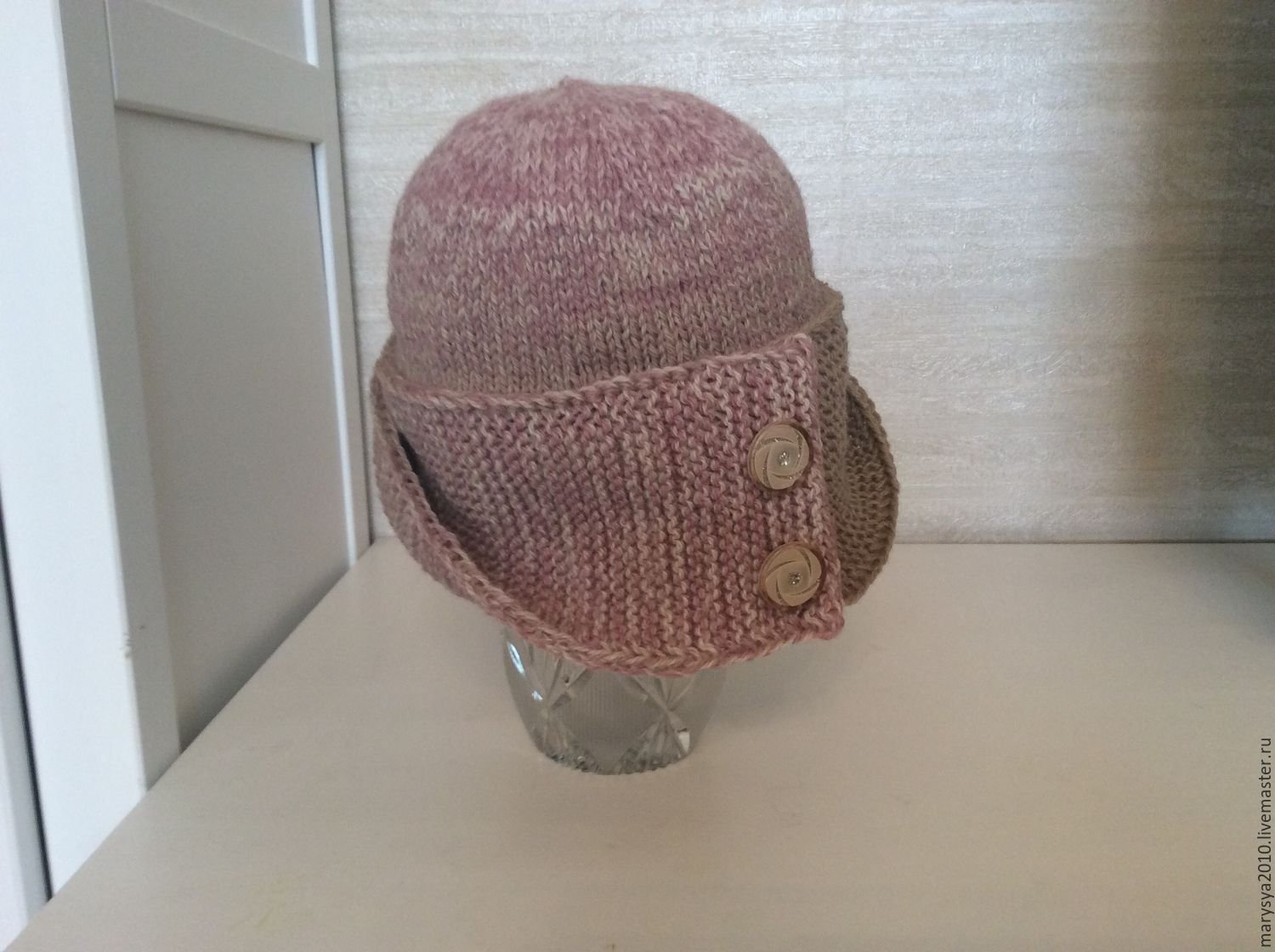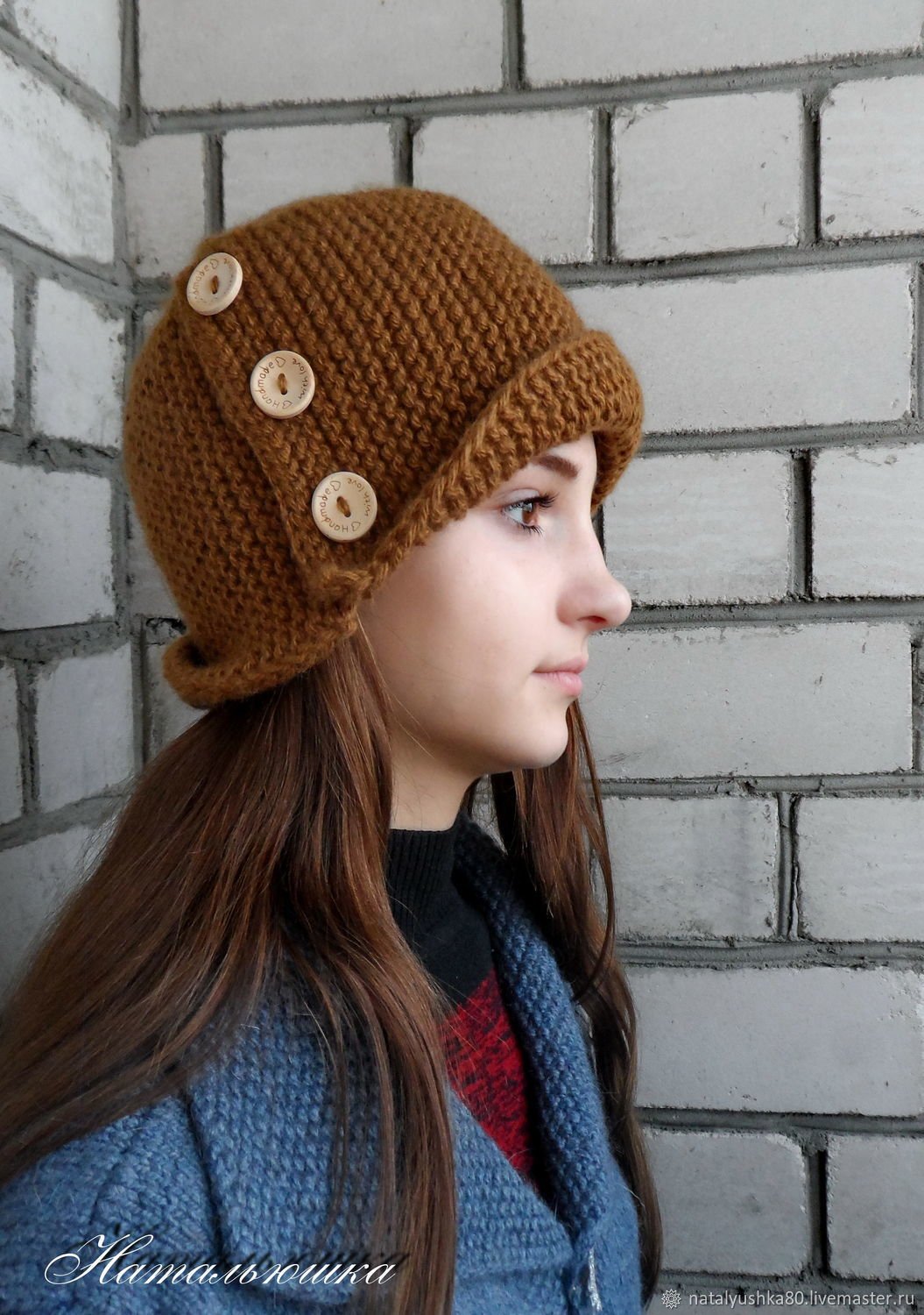 Шапка с пуговицами сбоку спицами