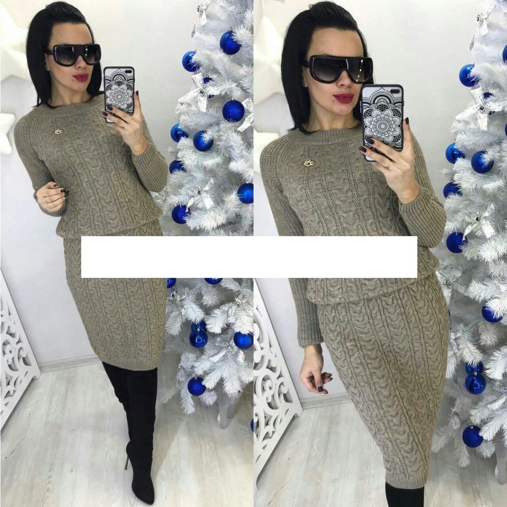 Вязаный женский костюм с юбкой карандаш