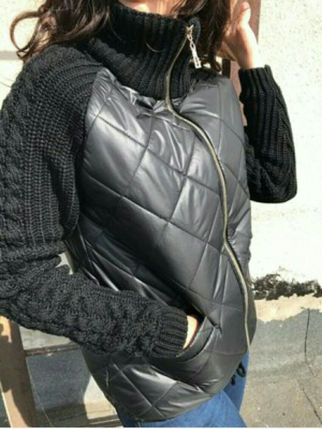 Стеганая куртка с вязанными рукавами