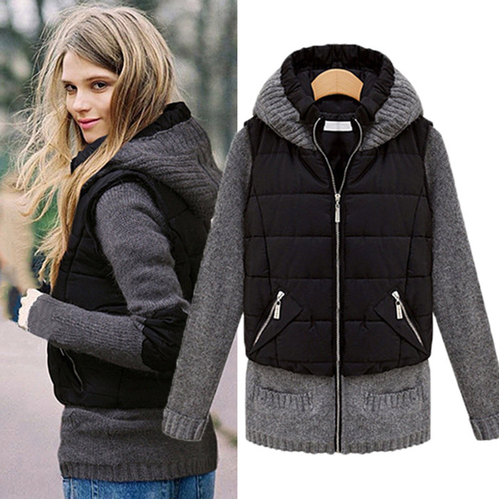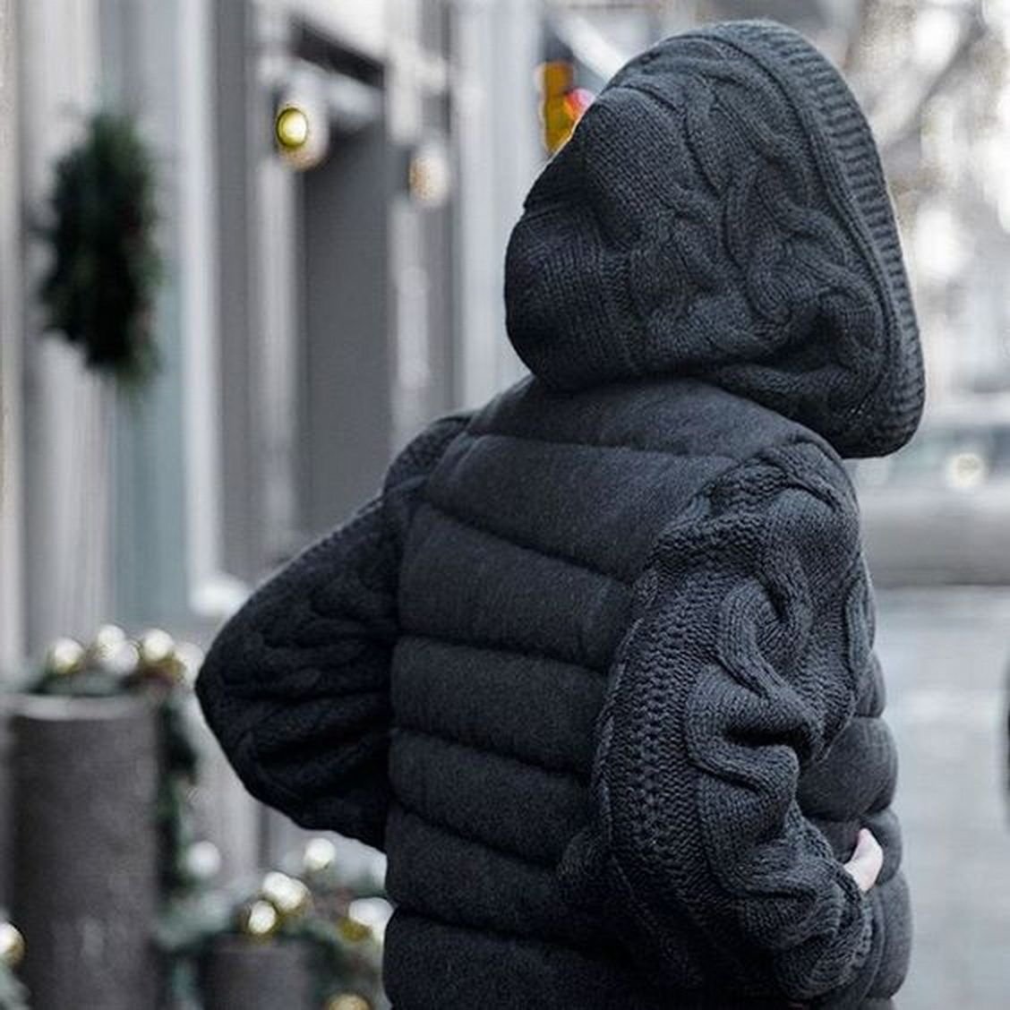 Куртка с вязаными рукавами и капюшоном