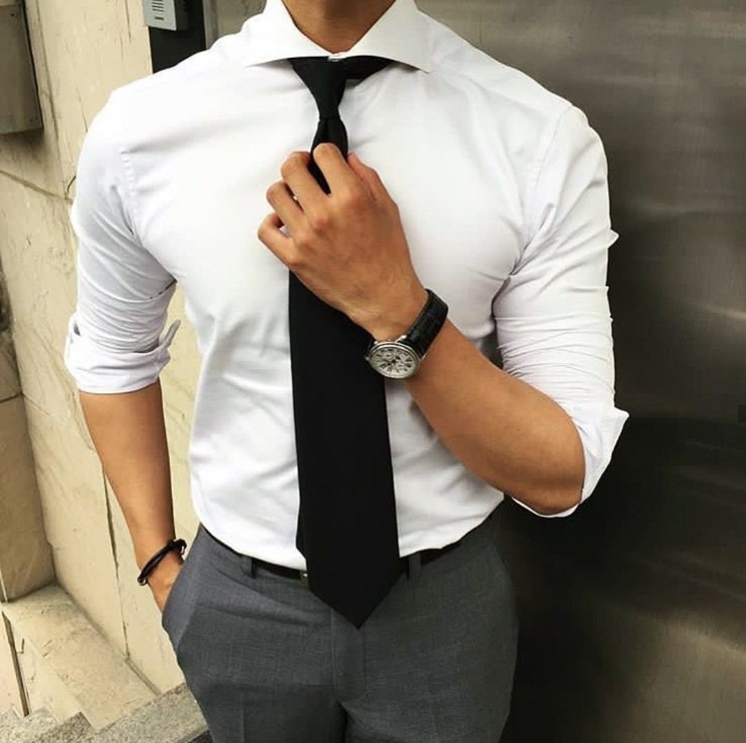 Белая рубашка с черным галстуком
