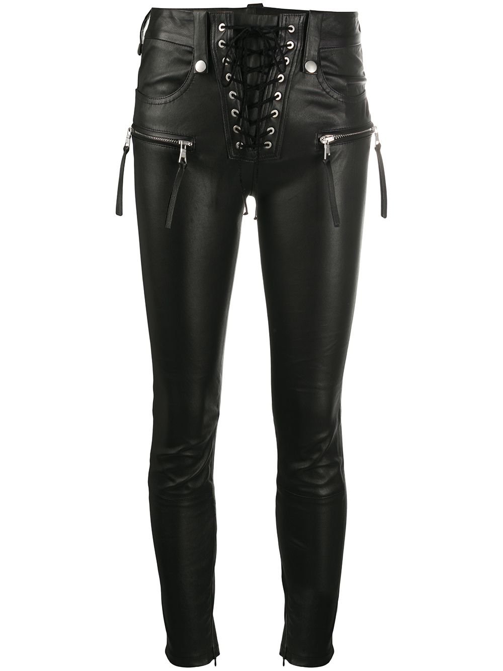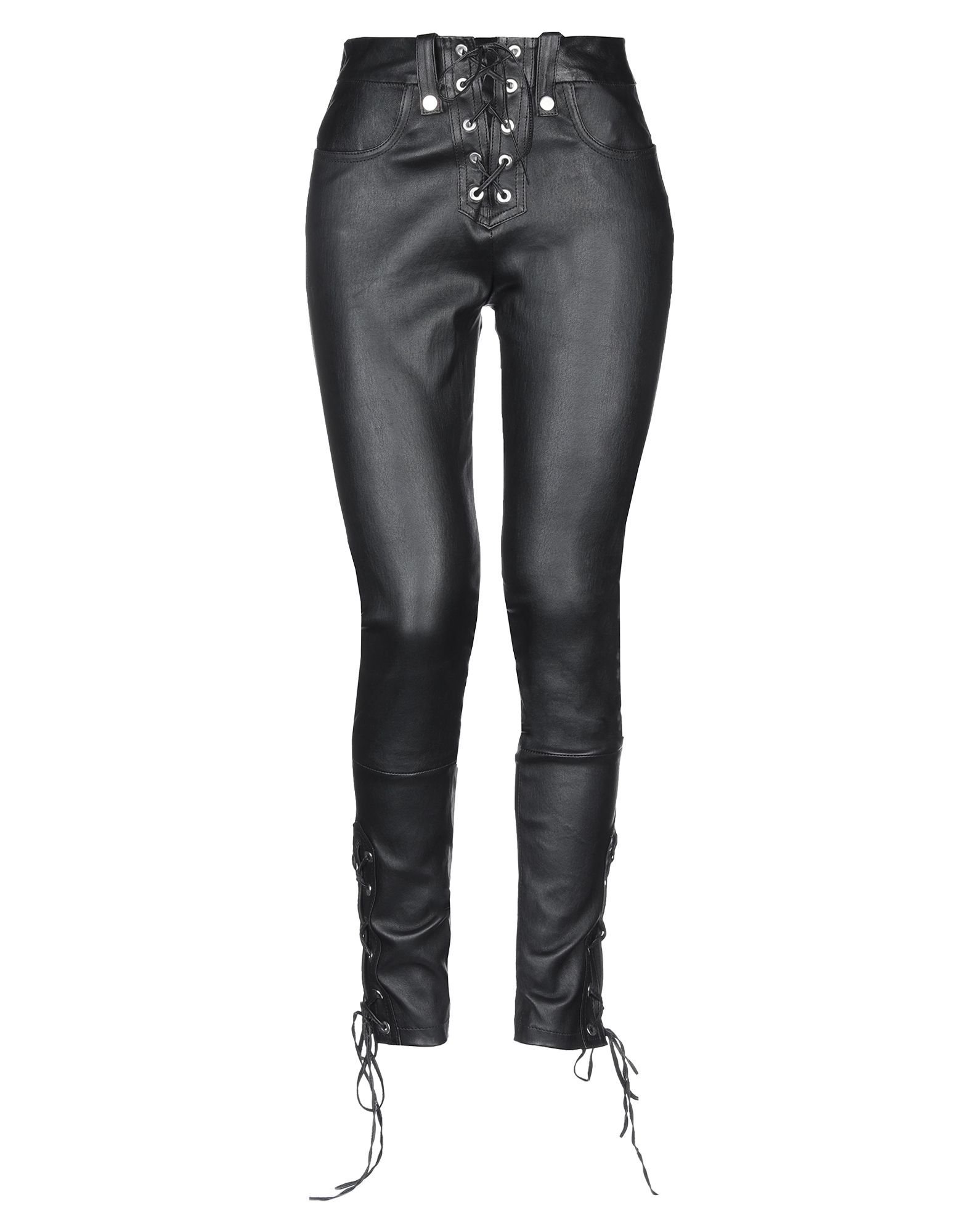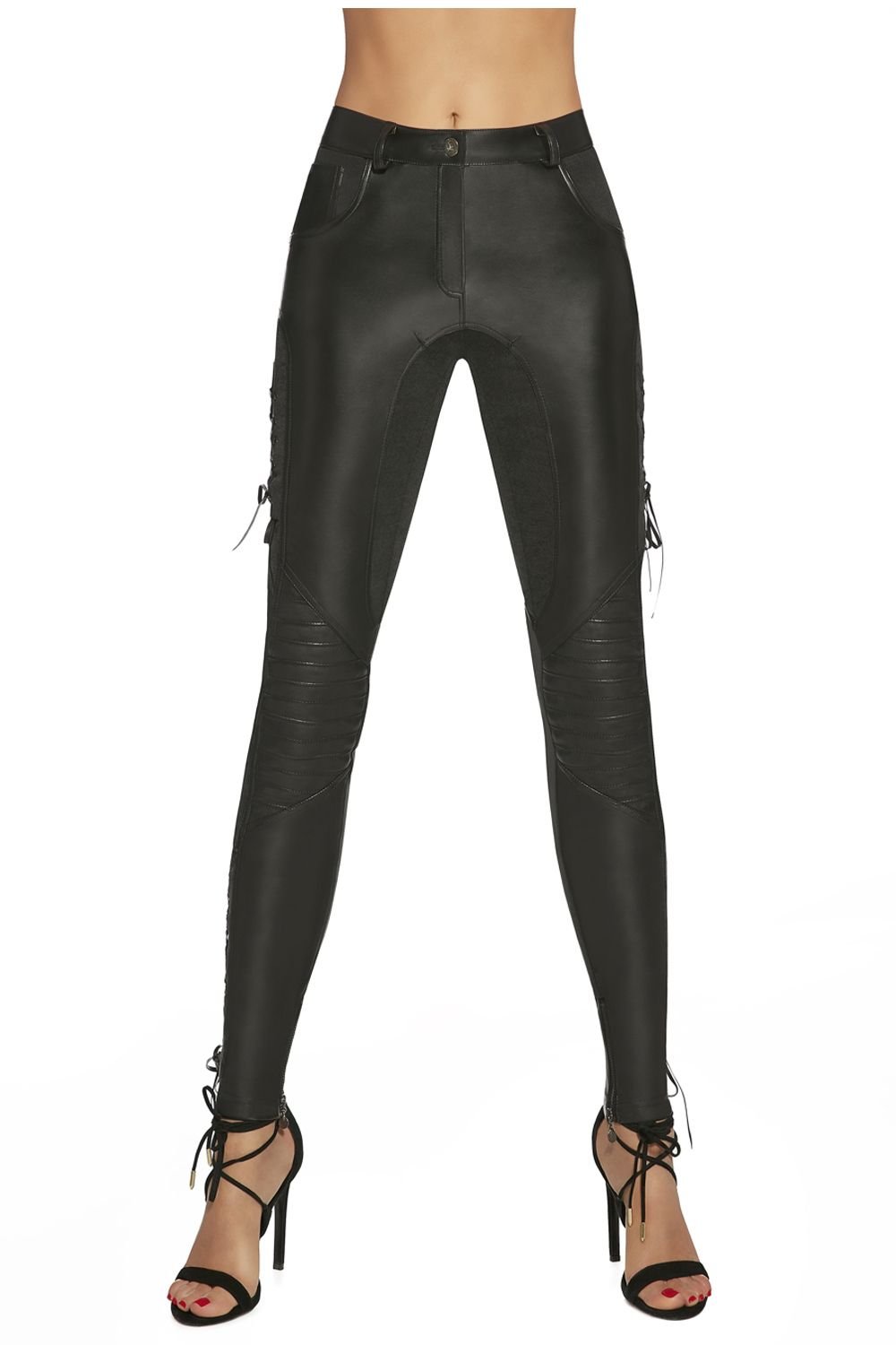 Кожаные легинсы со шнуровкой спереди