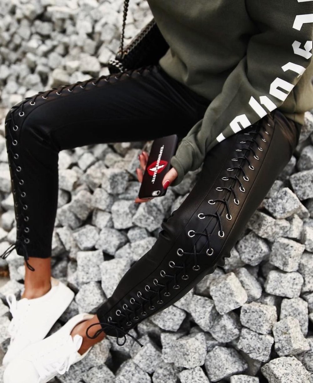 Кожаные брюки со шнуровкой [43 фото]