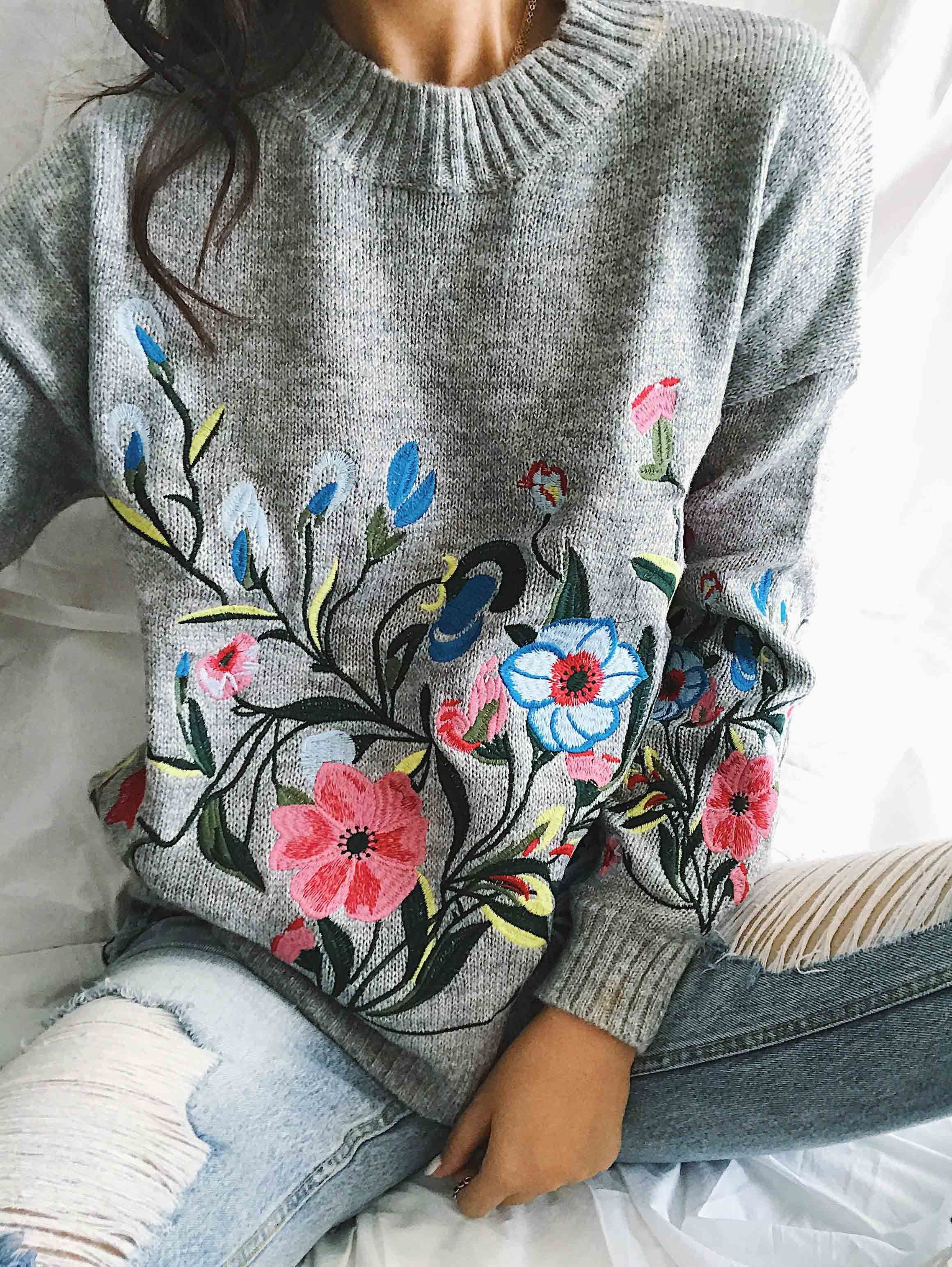 Свитер с вышитыми цветами