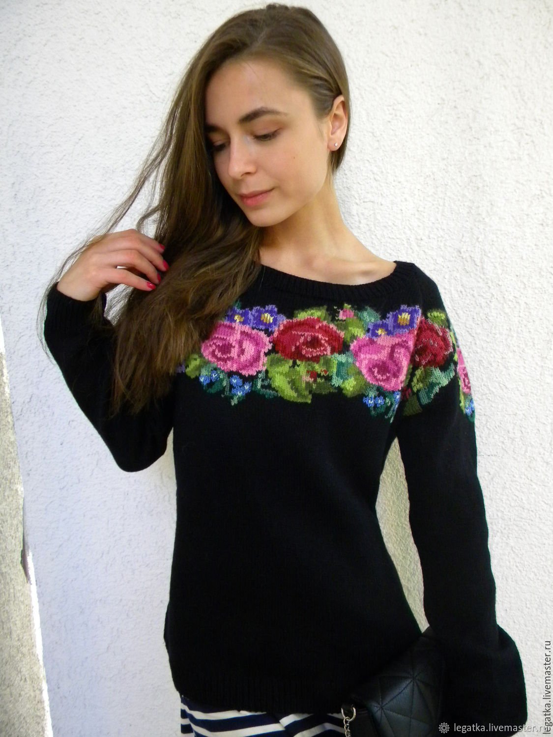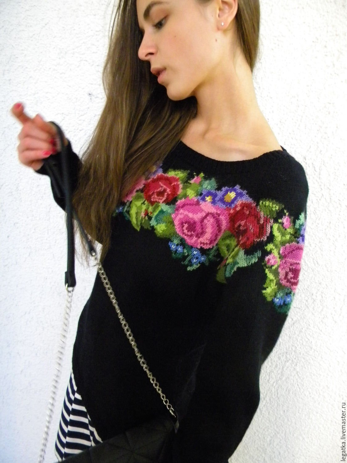 Вязаные свитера с розами