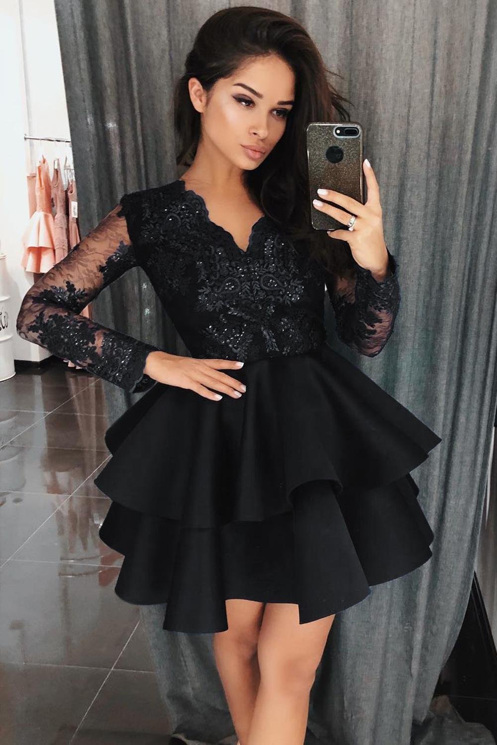 Короткое пышное черное платье [50 фото]