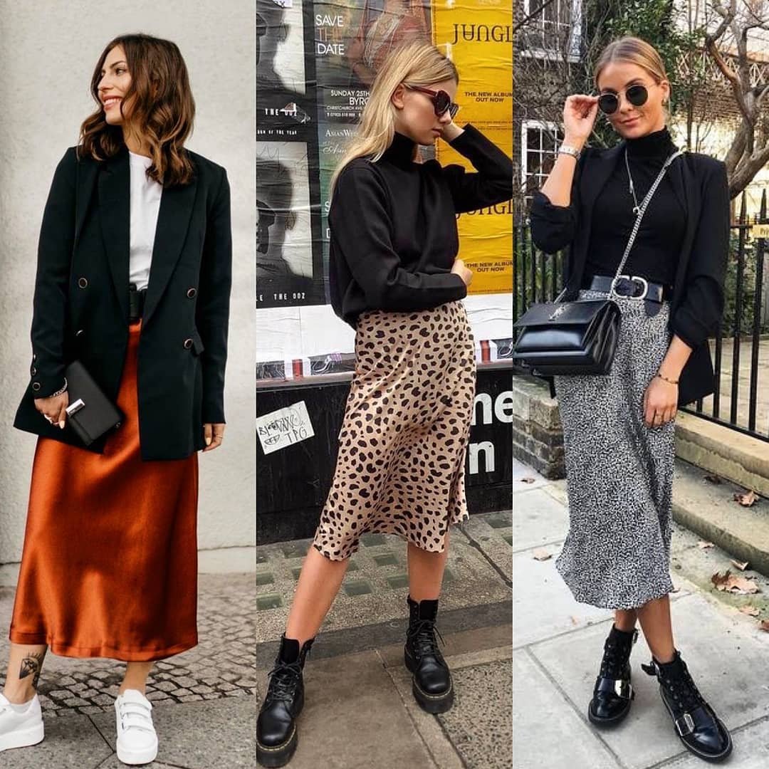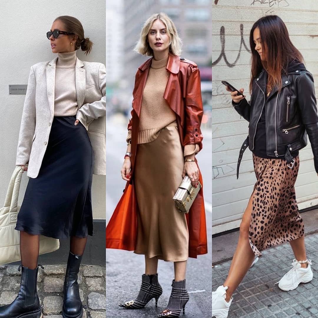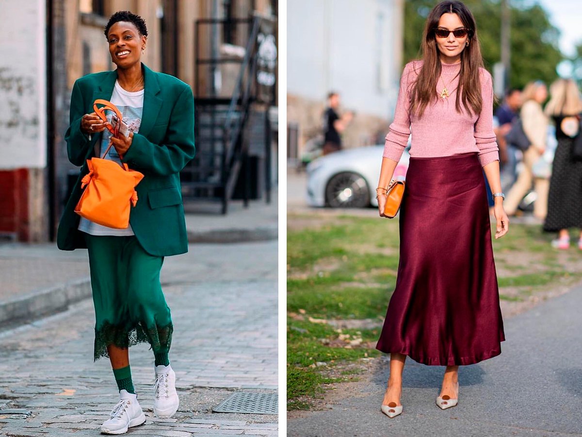 Образы с шелковой юбкой миди
