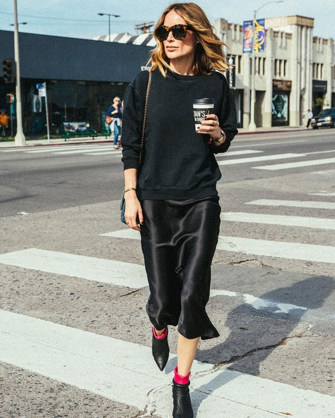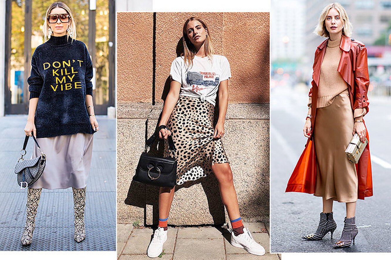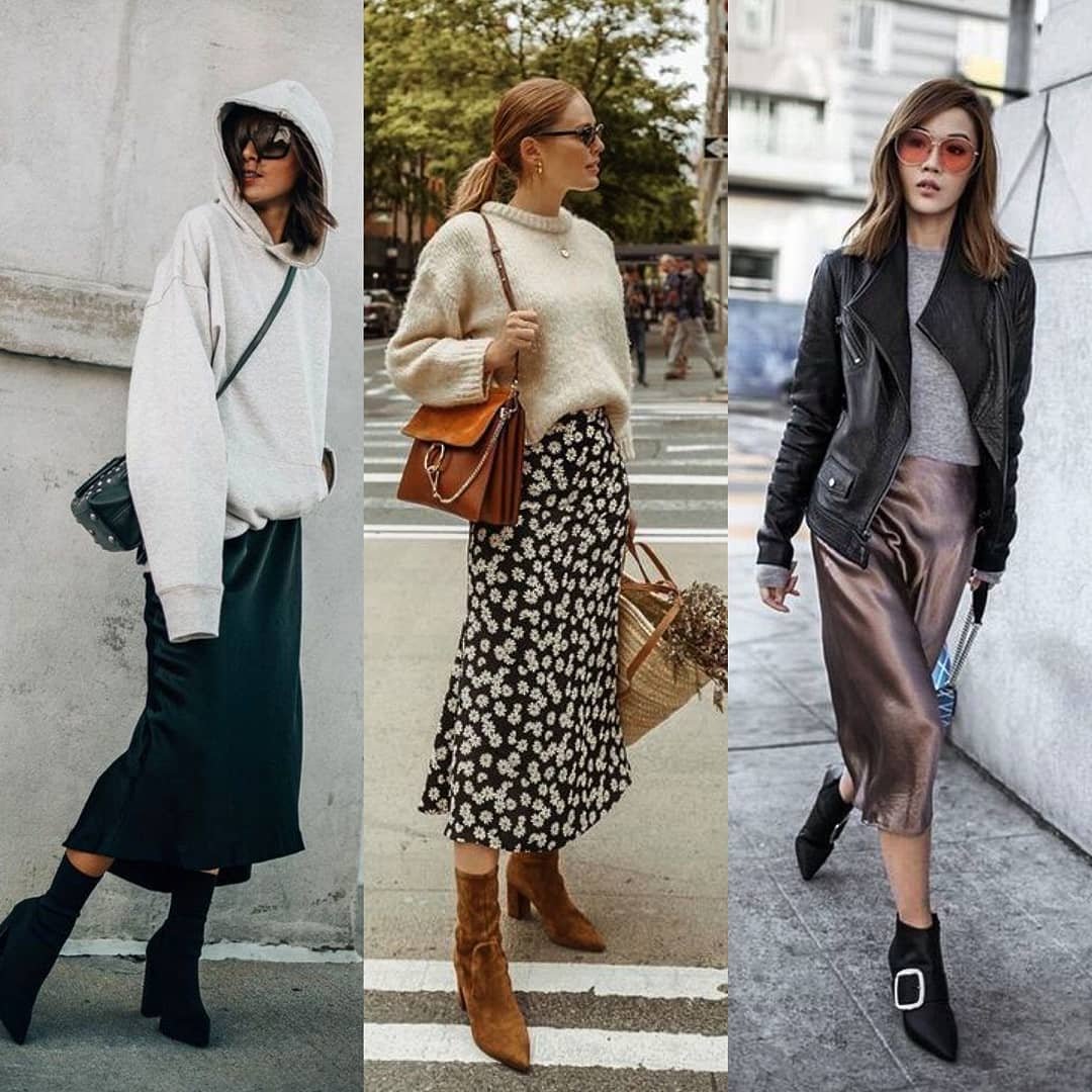 Образы с шелковой юбкой миди