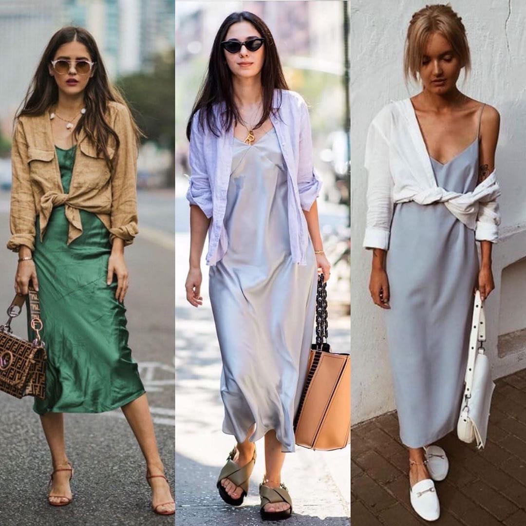 Образы с платьем в бельевом стиле