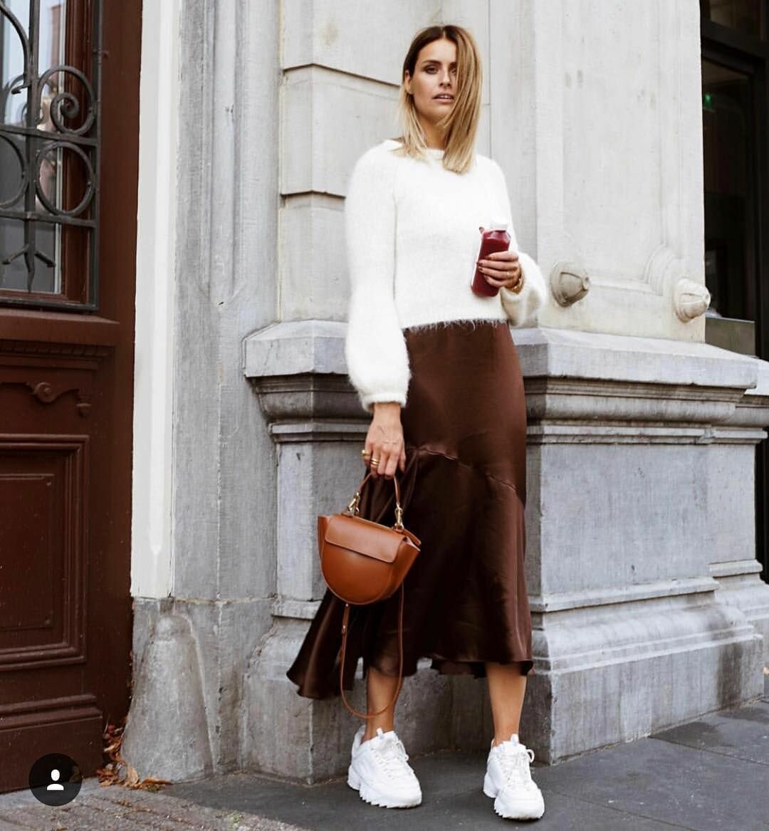 Атласная юбка с кроссовками