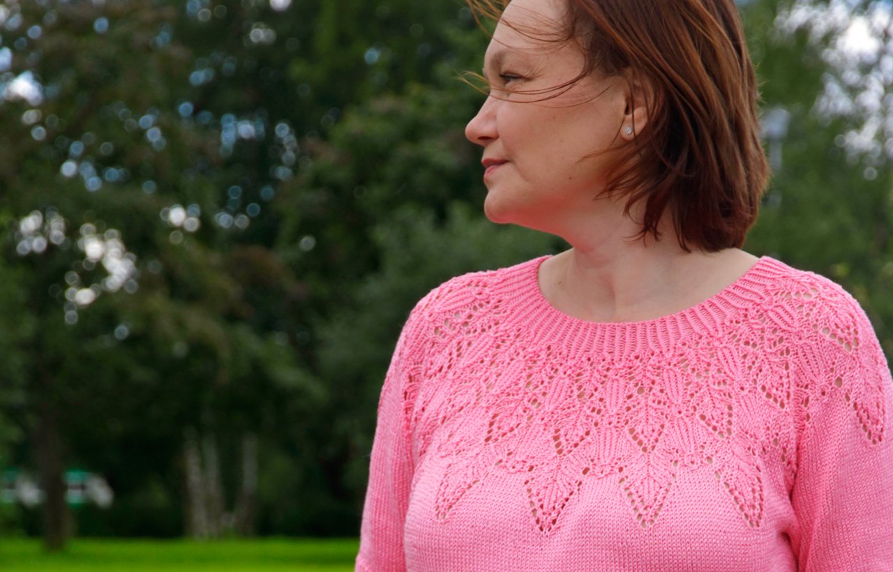 Летний пуловер с круглой кокеткой
