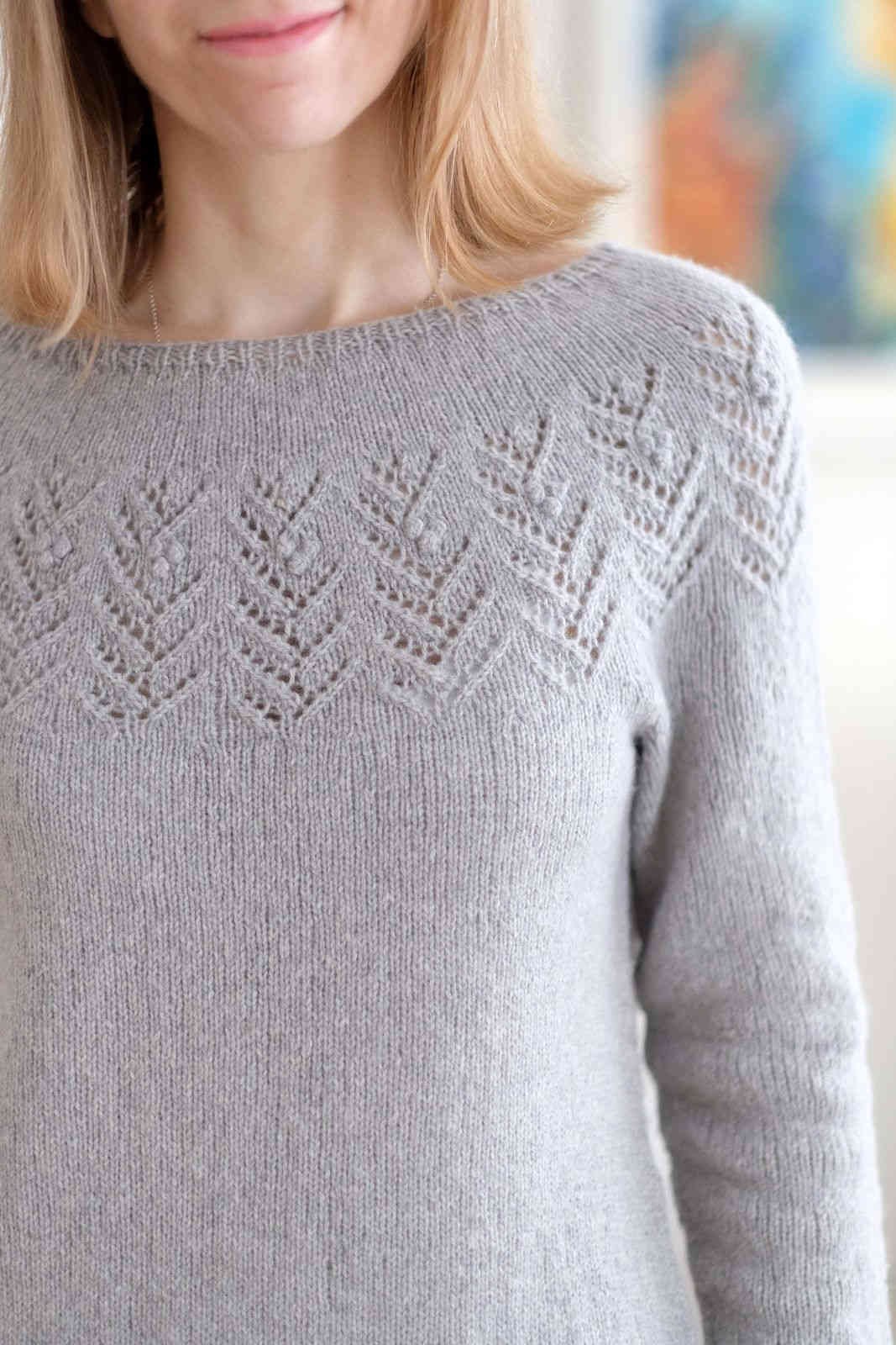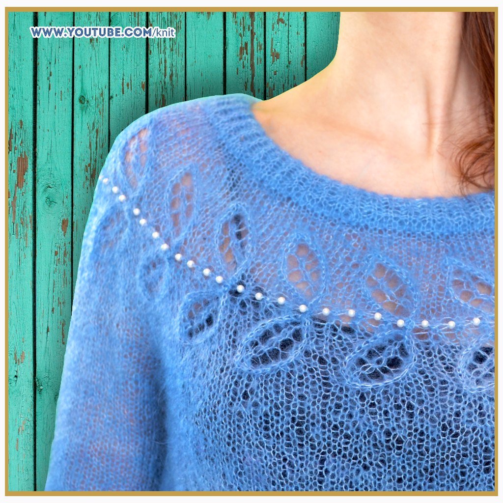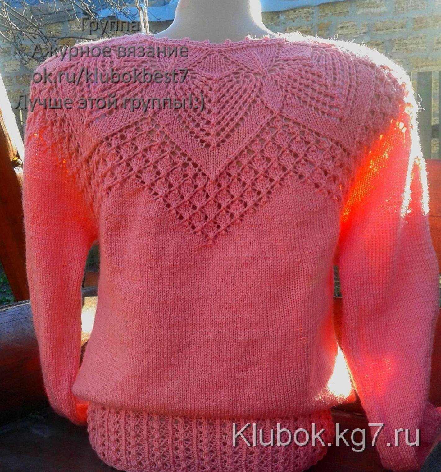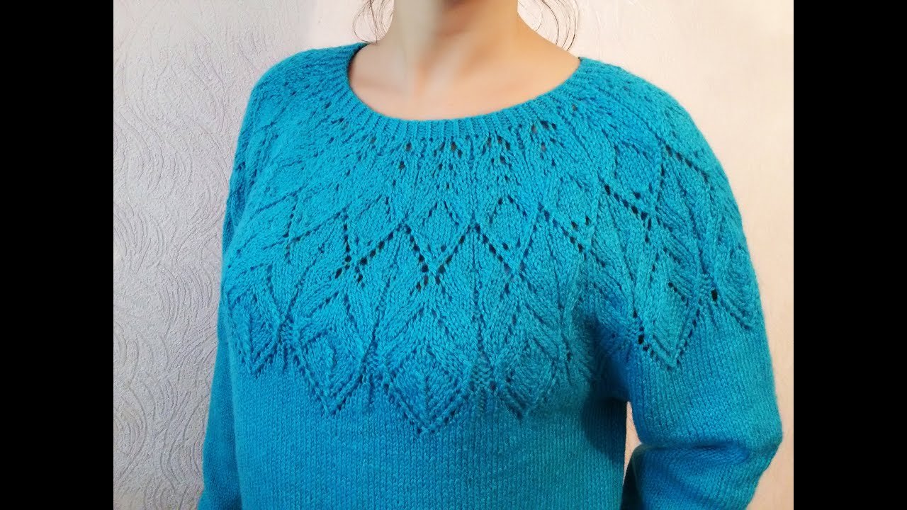 Свитер с ажурной кокеткой спицами