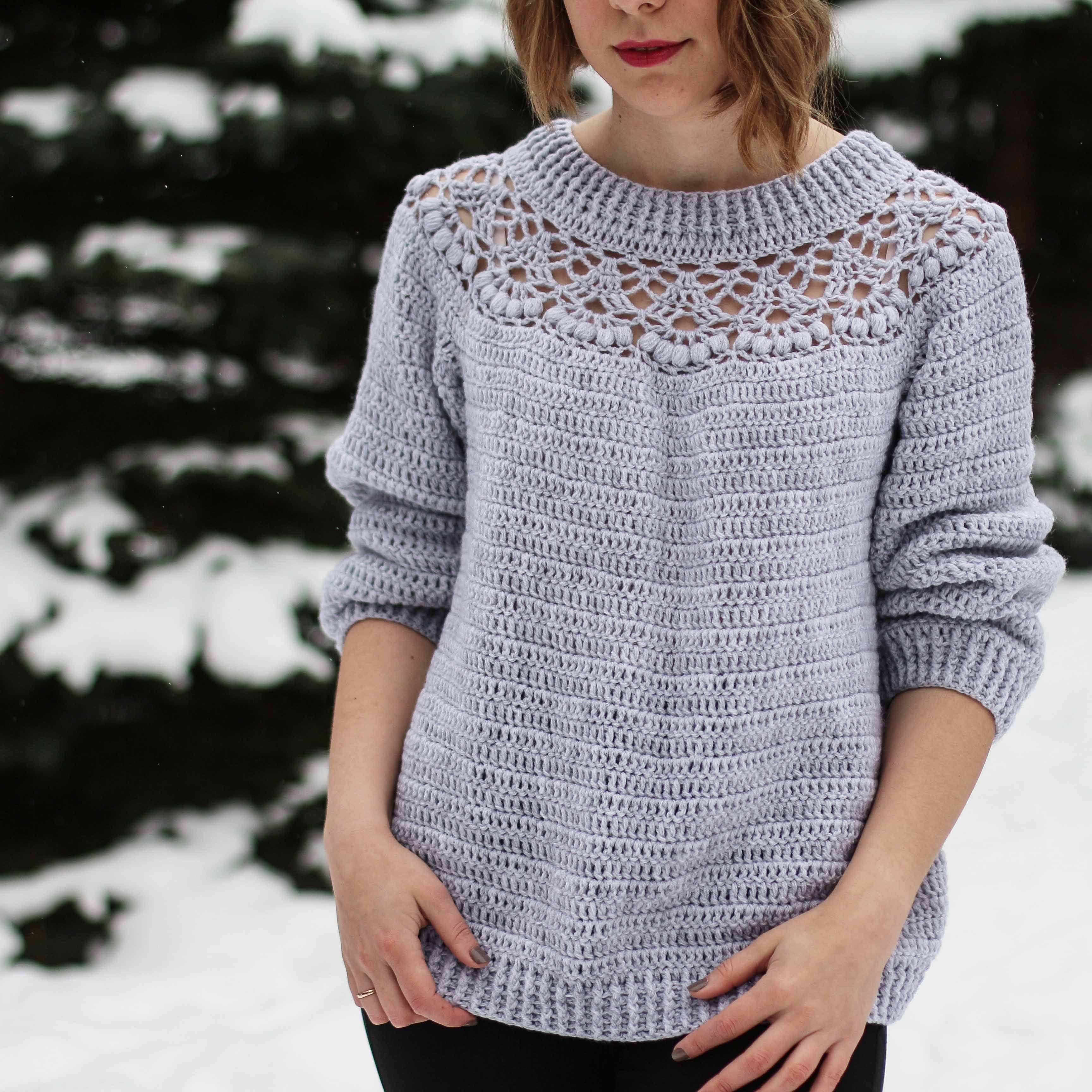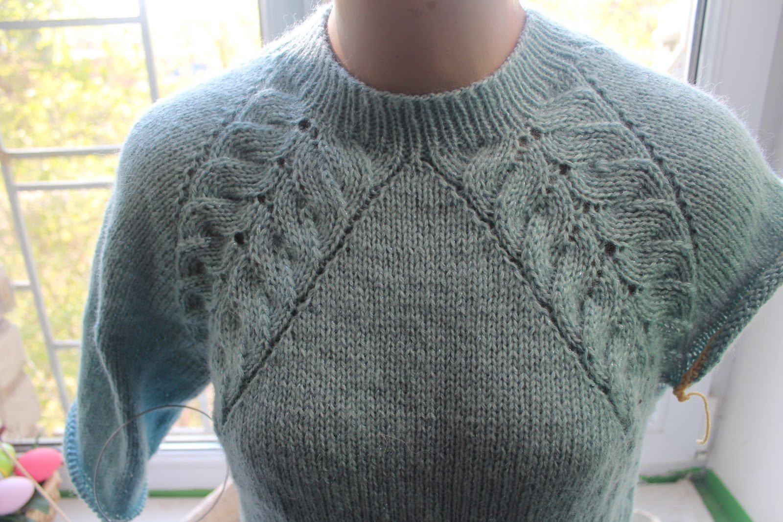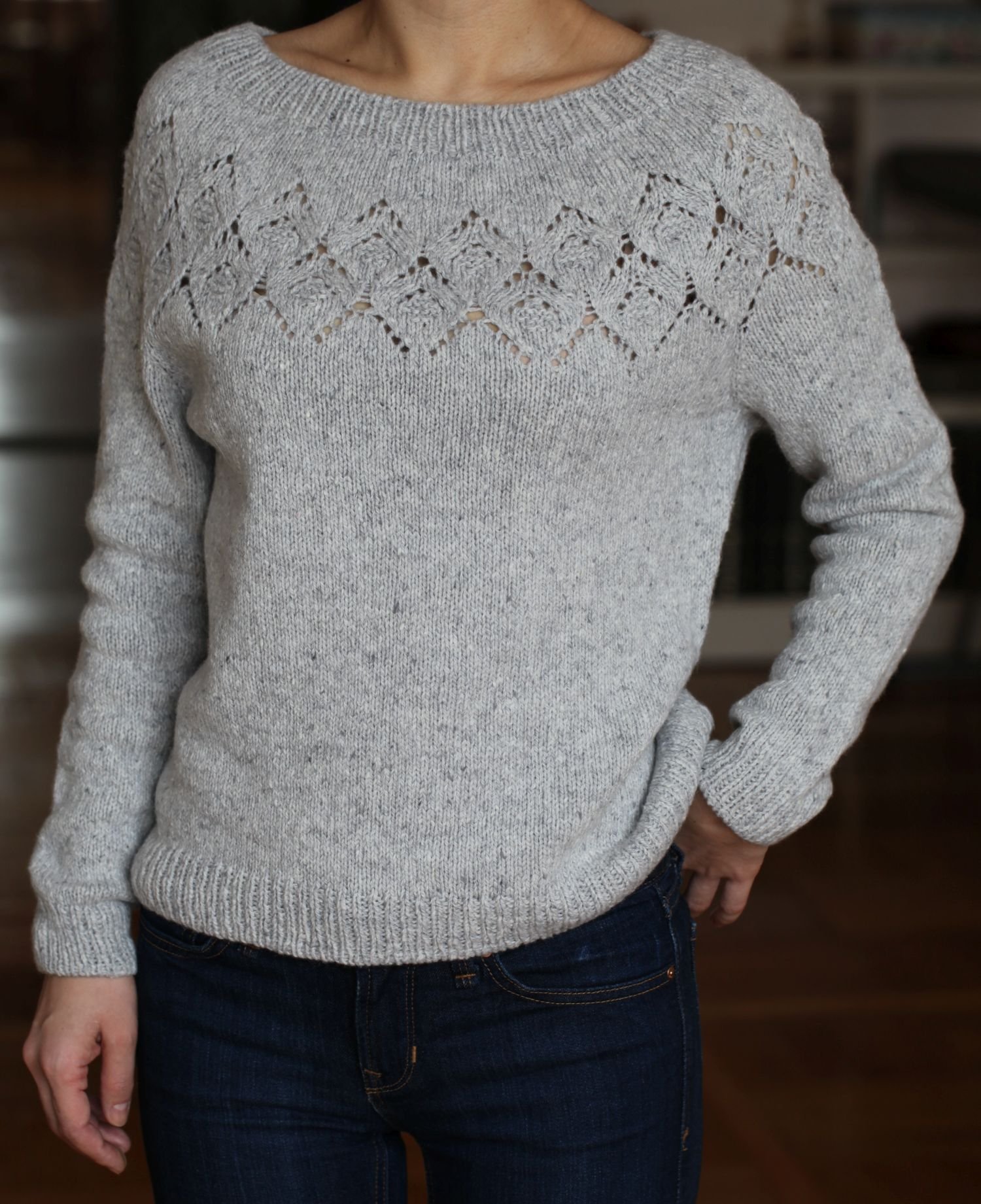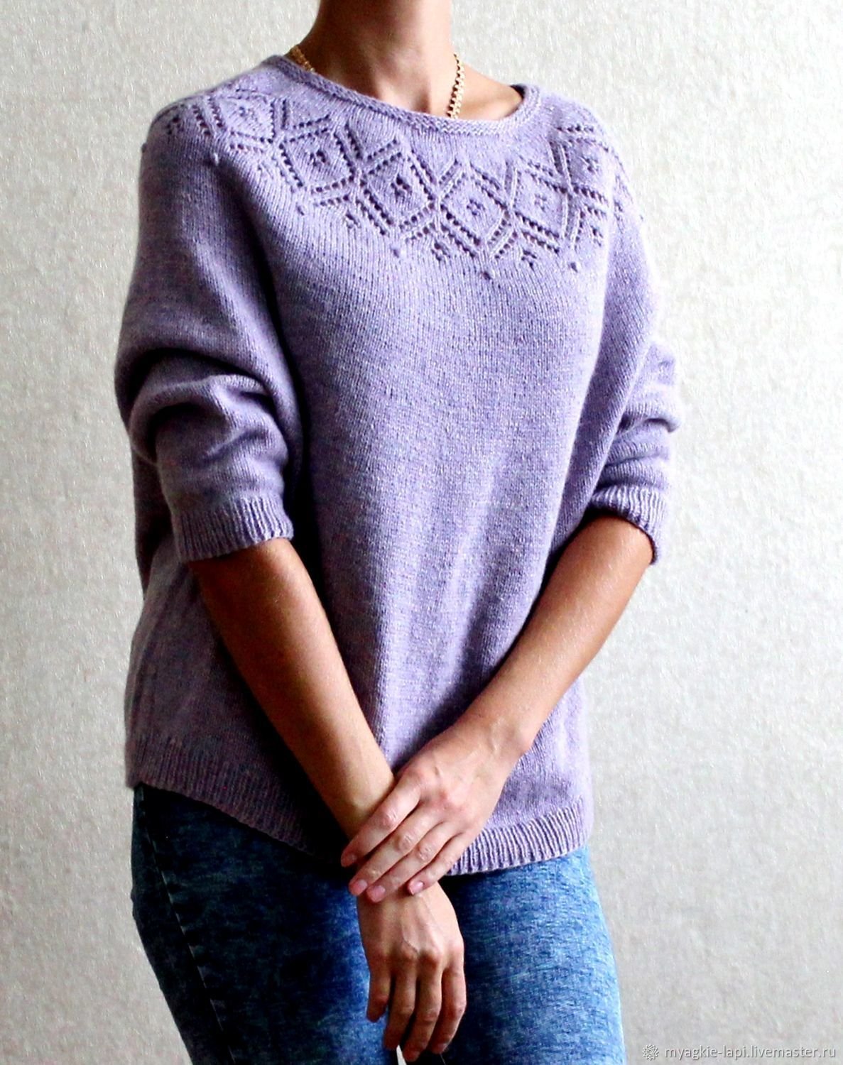 Свитер с ажурной кокеткой спицами