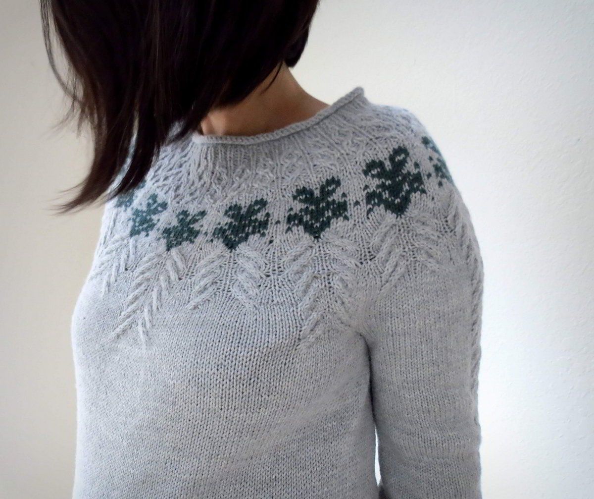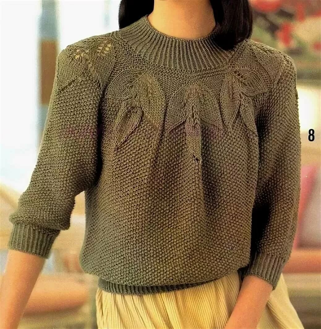 Кофта с кокеткой листиками