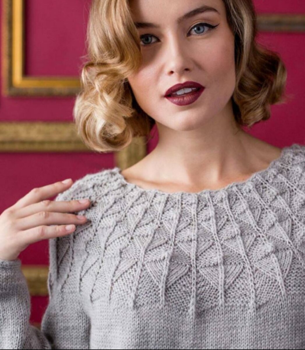Свитер женский с круглой кокеткой спицами