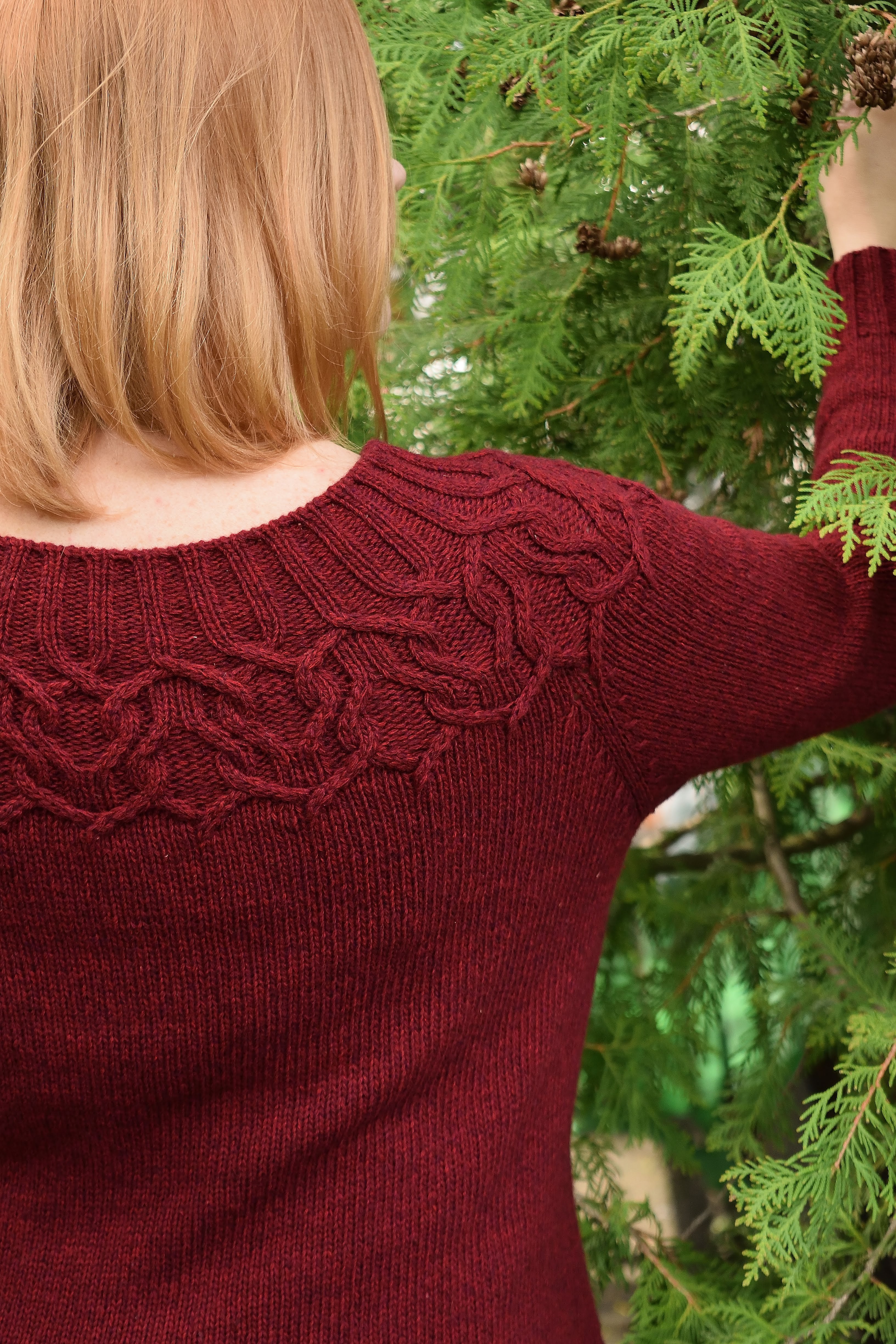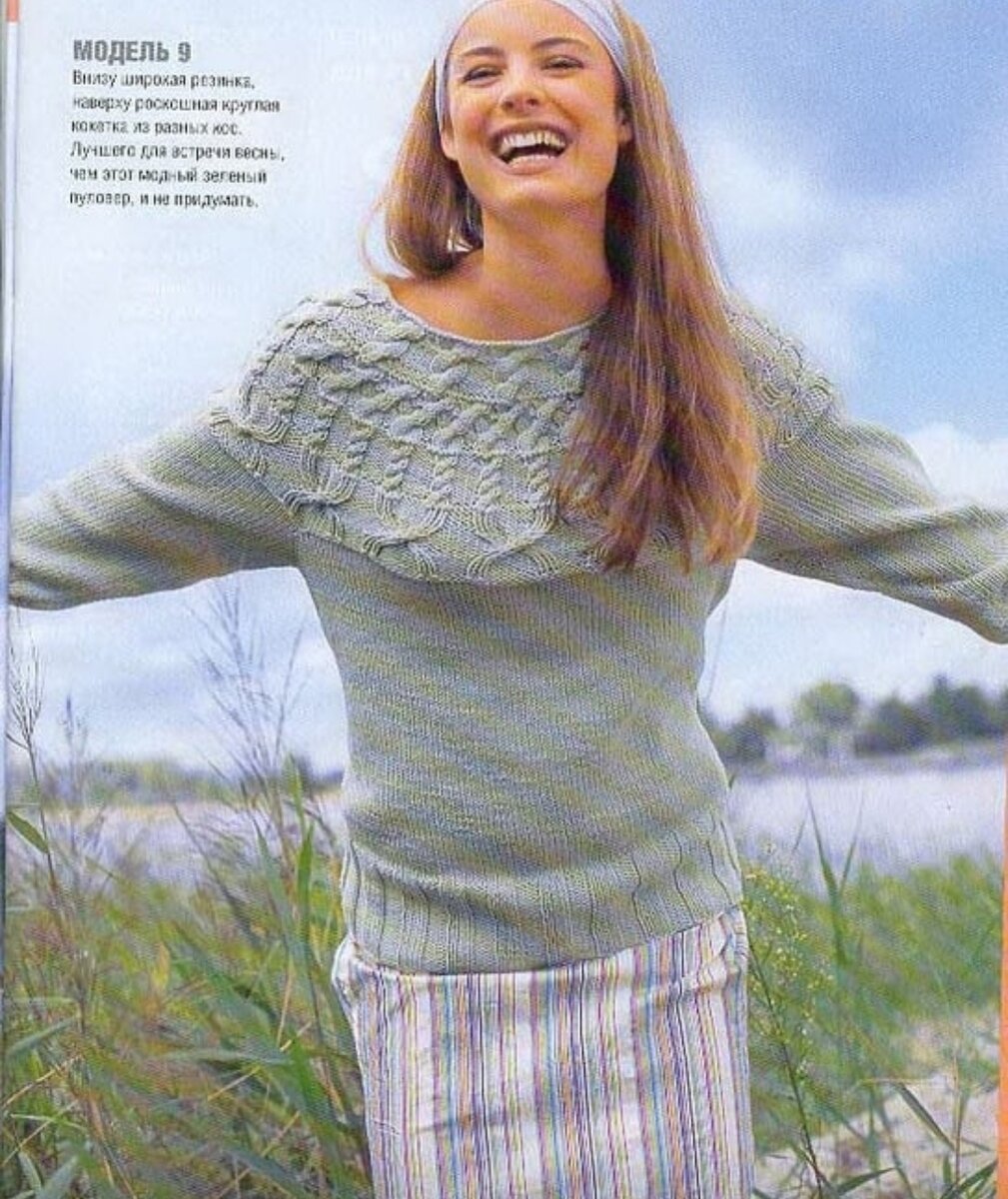 Свитер с круглой кокеткой спицами