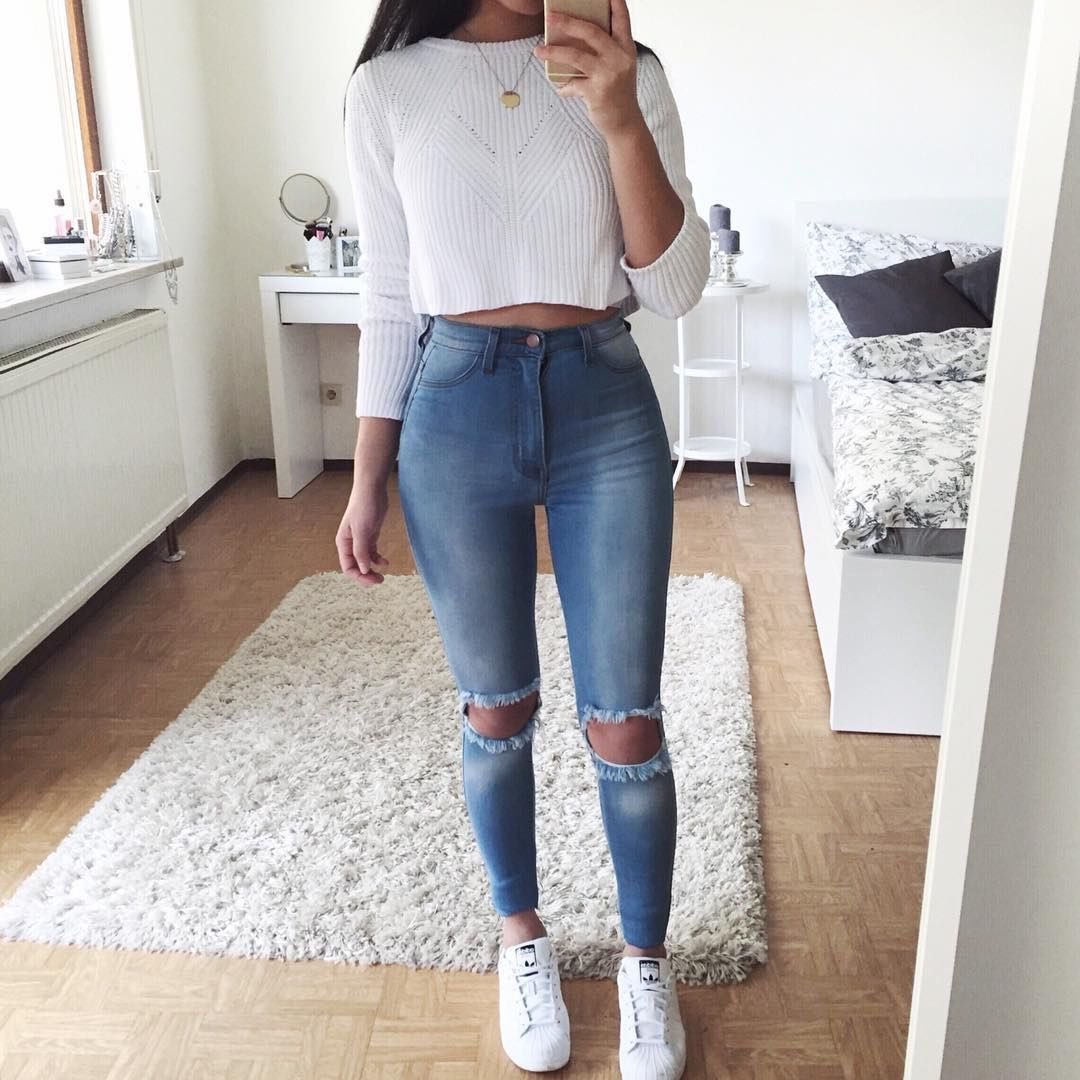 Красивые девушки в обтягивающих джинсах с высокой талией