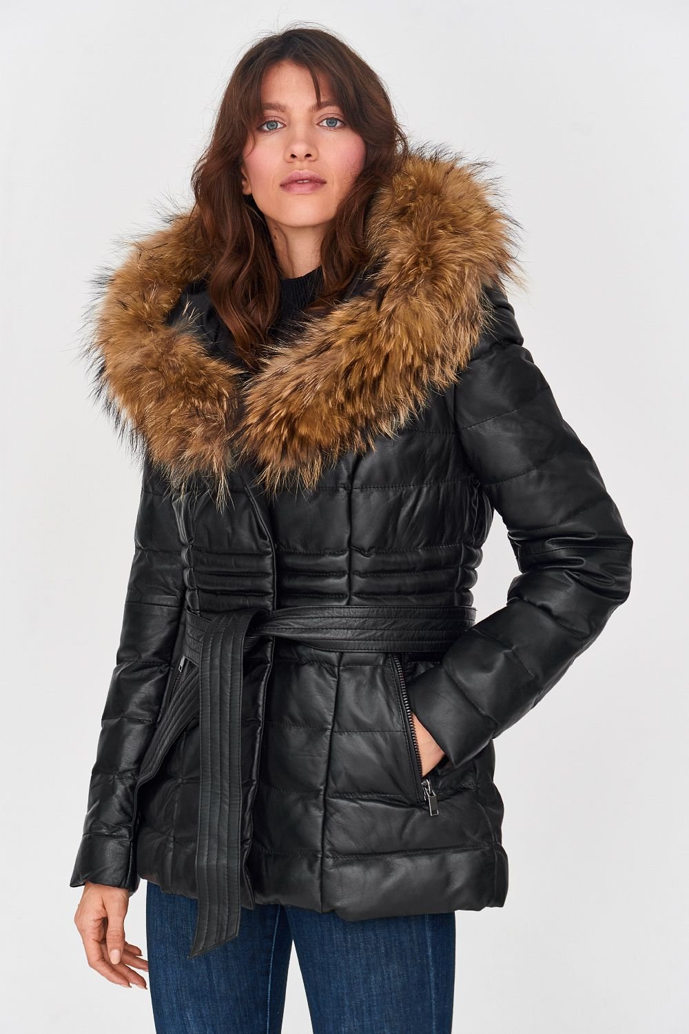 Кожаные пуховики женские из натуральной кожи Снежная Королева