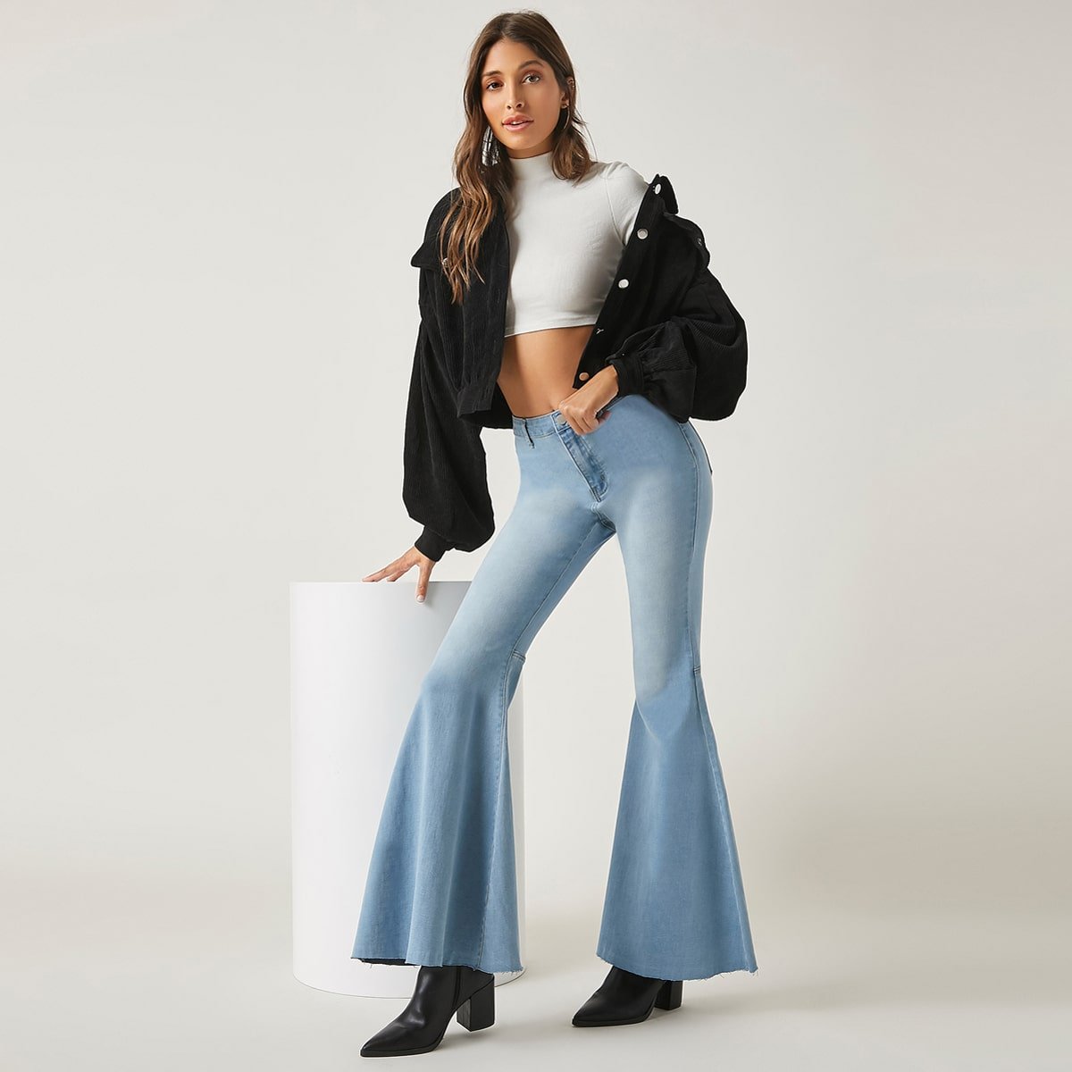 Джинсы клеш с ботинками