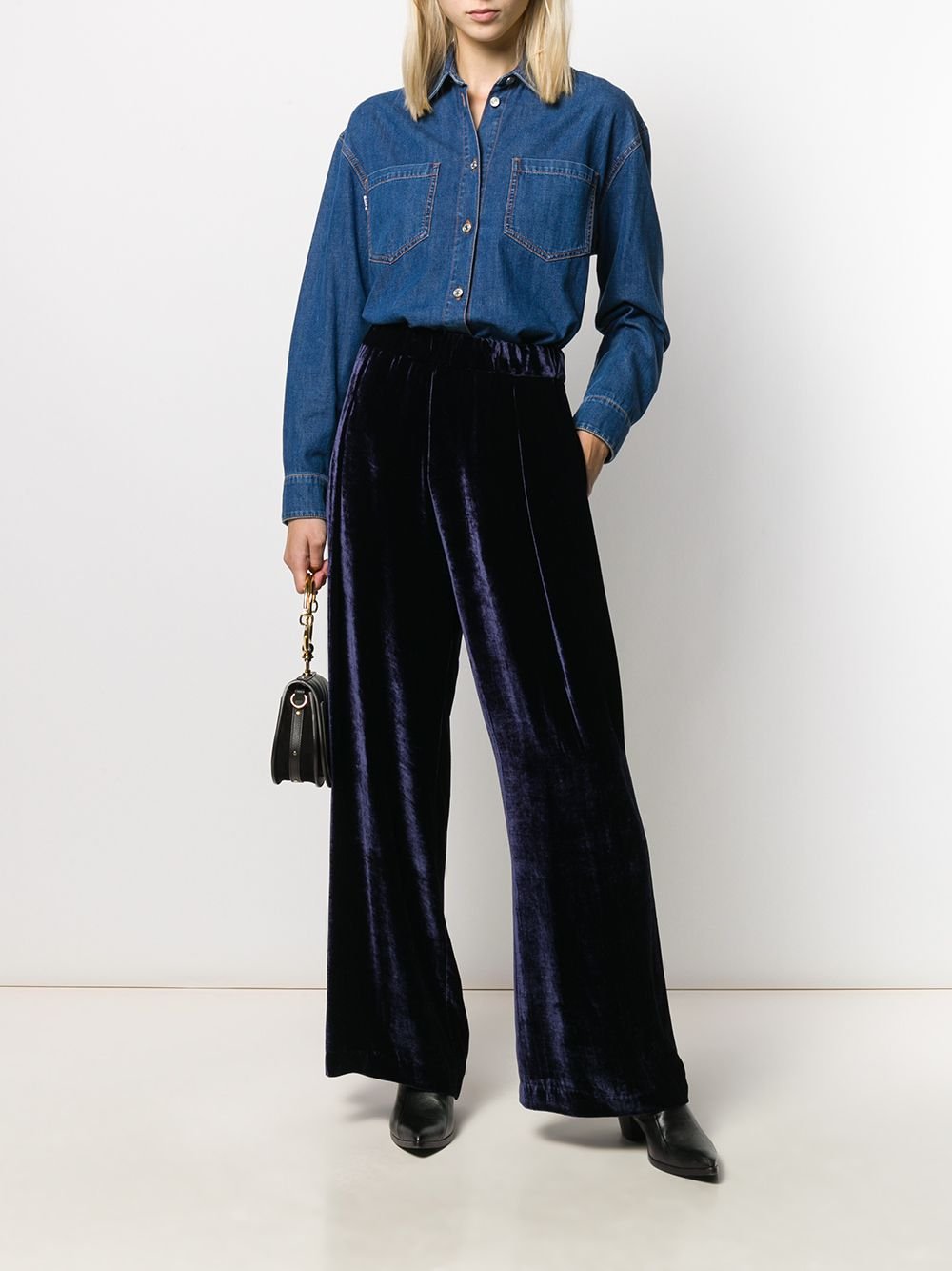 Бархатные брюки палаццо [54 фото]