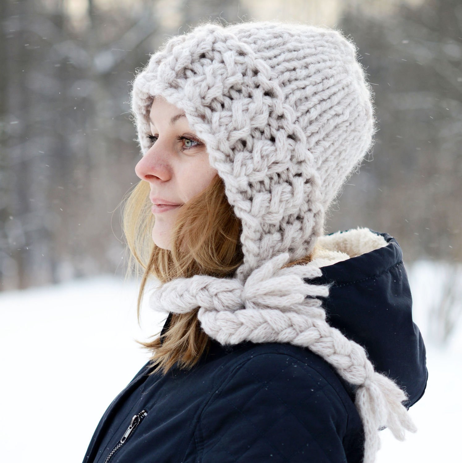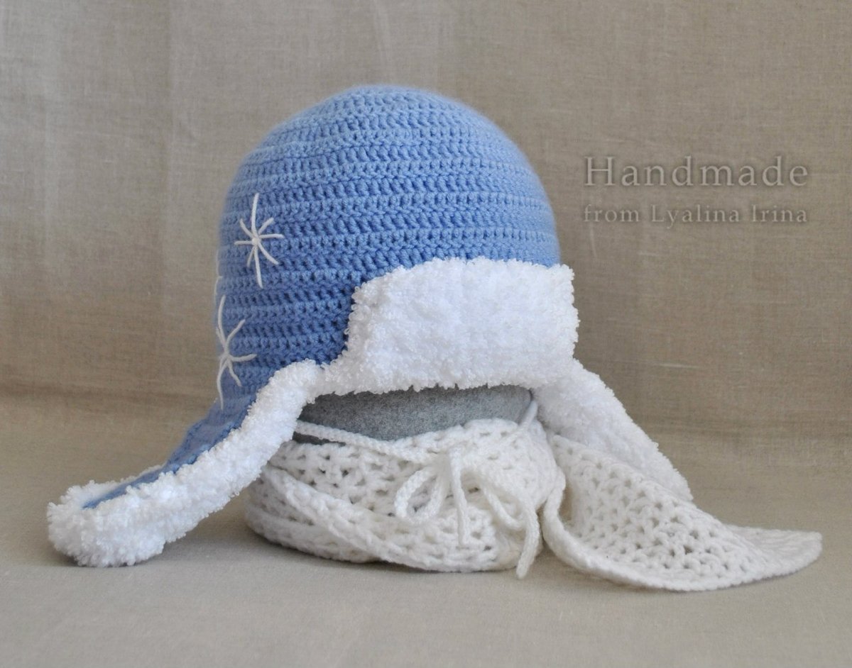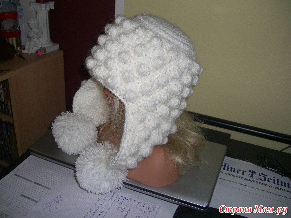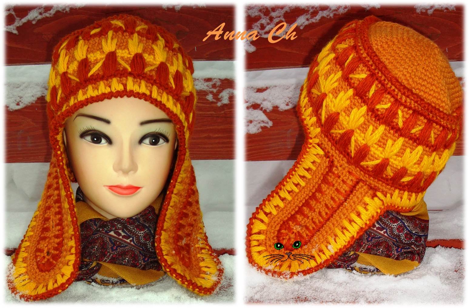 Вязаная шапка ушанка женская из толстой пряжи схема